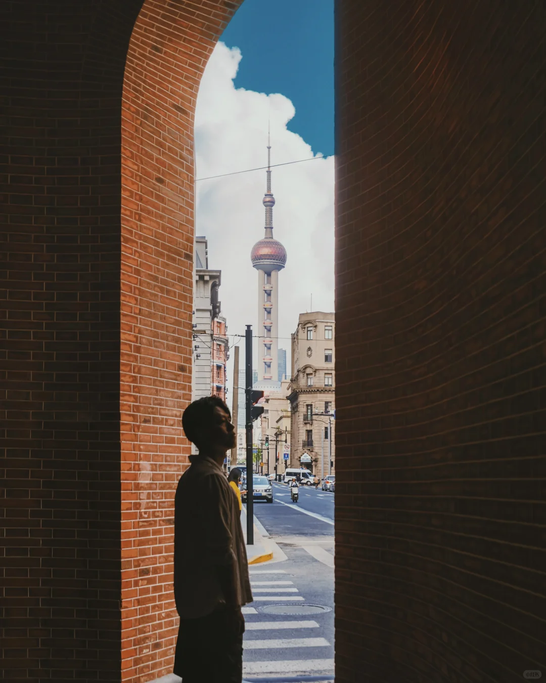 同样的门框构图,透过拱门,正好可以打卡东方明珠塔