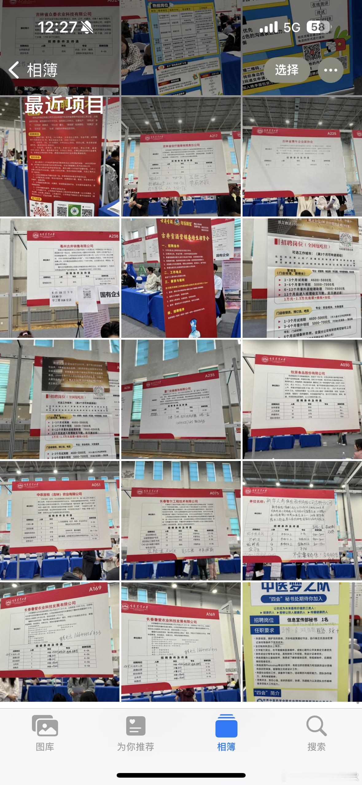 今天六点半起床化妆去学校招聘会困死我了😴😴快毕业了开始急了找工作千万不要学我🤕相册里都是拍招聘信息加了很多负责人的联系方式
