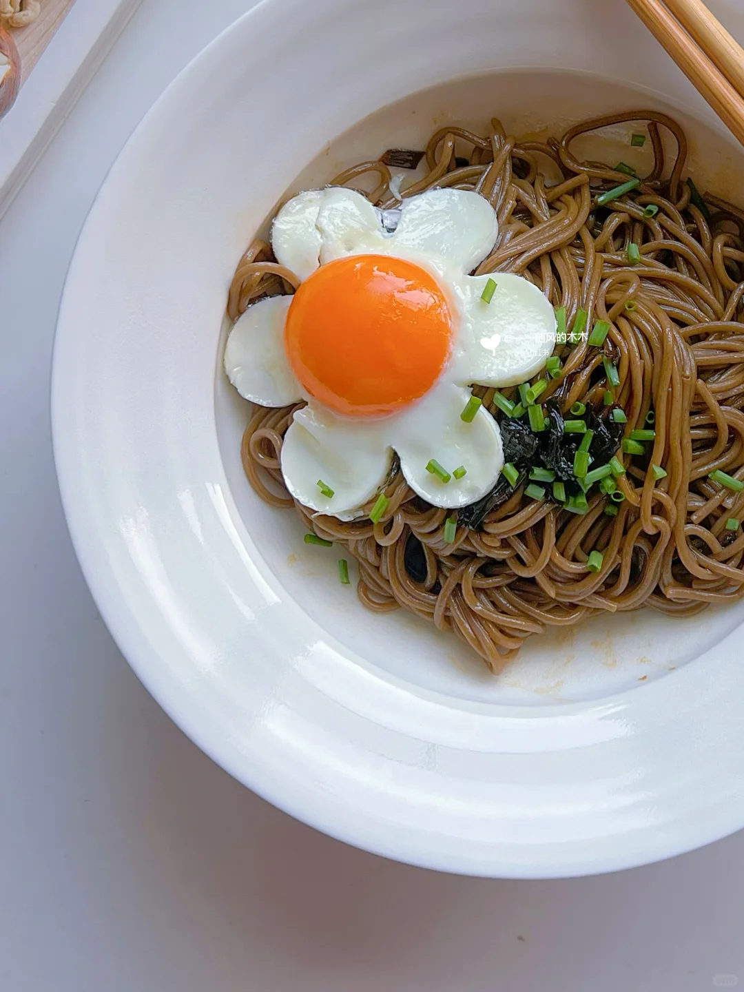 低脂低卡吃这些 好久不吃葱油拌面咯 有了这个上海葱油 随时可以安排,真的很方便![点赞R][点赞R] 拌啥都香[点赞R][点赞R] 减脂期就用荞麦面吧 煮好面挖一大勺拌匀就一吃 煮面的间隙煎了一个花花蛋 小的时候统筹安排学的不错呀😜[偷笑R][偷笑R][偷笑R]