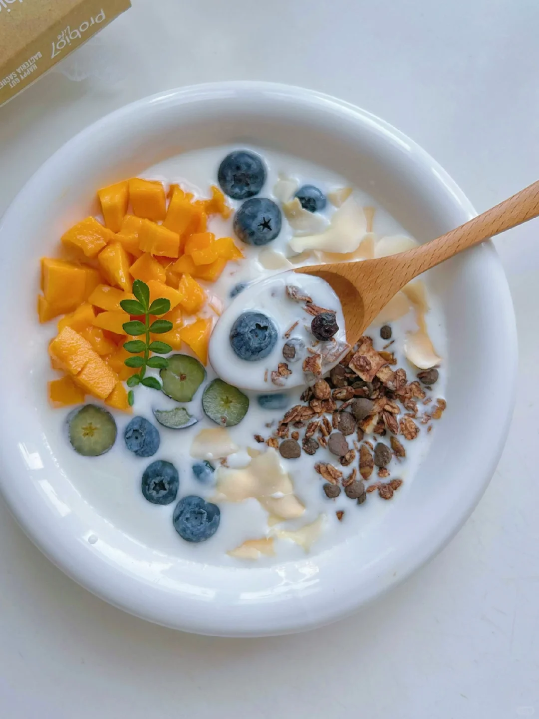 3️⃣第二天一早就可以喝上新鲜的酸奶,加点自己喜欢的水果、坚果、麦片即可