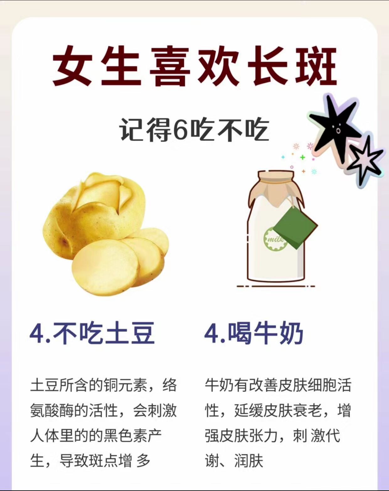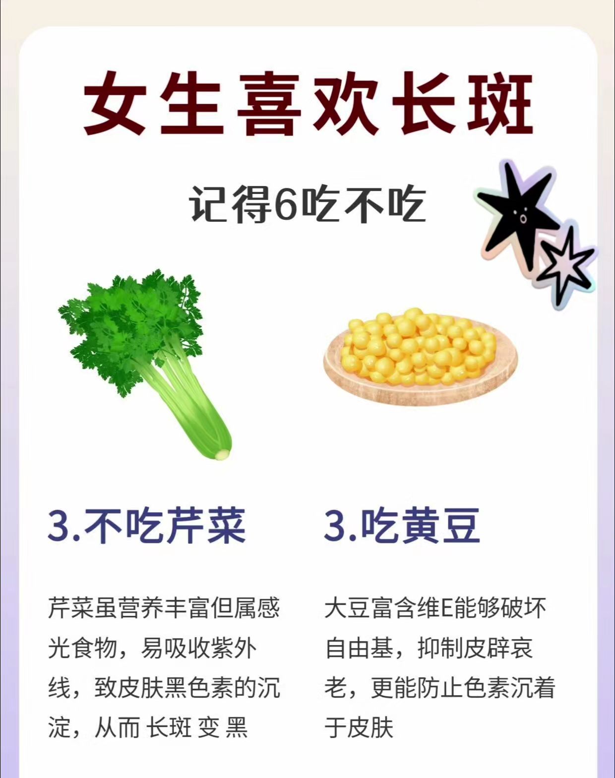 女生长斑,记得日常的6吃6不吃。美白淡斑祛斑淡斑淡斑黄褐斑祛斑