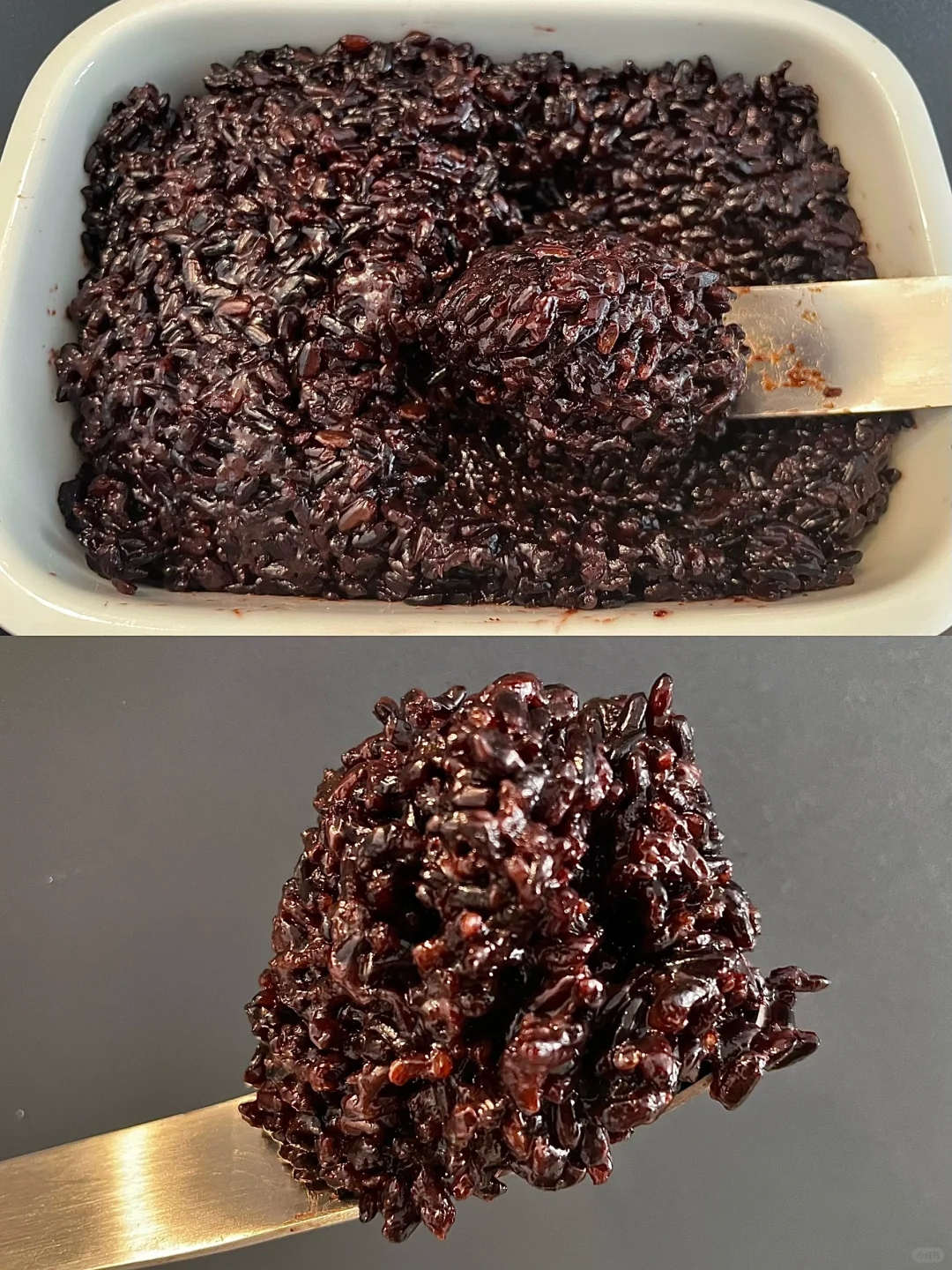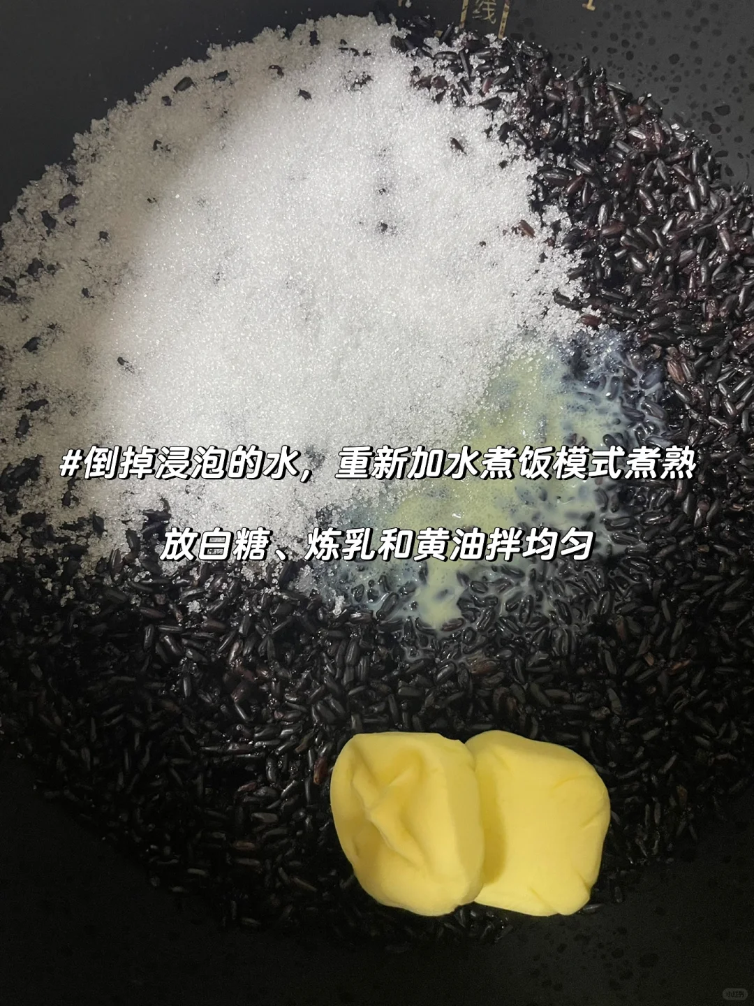 紫米陷的用途很多,做面包、各种甜品、饮品都会用到紫米陷❗️ 自己做很简单,也很好吃,空口吃都很好吃❗️ 【所需食材】 紫糯米400克|白糖80克|炼乳30克|黄油20克 做法👇 1⃣️紫糯米冰箱冷藏浸泡一夜 2⃣️第二天倒掉水,重新加水750克,电饭煲煮饭功能煮熟 3⃣️趁热加入白糖、炼乳和黄油拌均匀即可