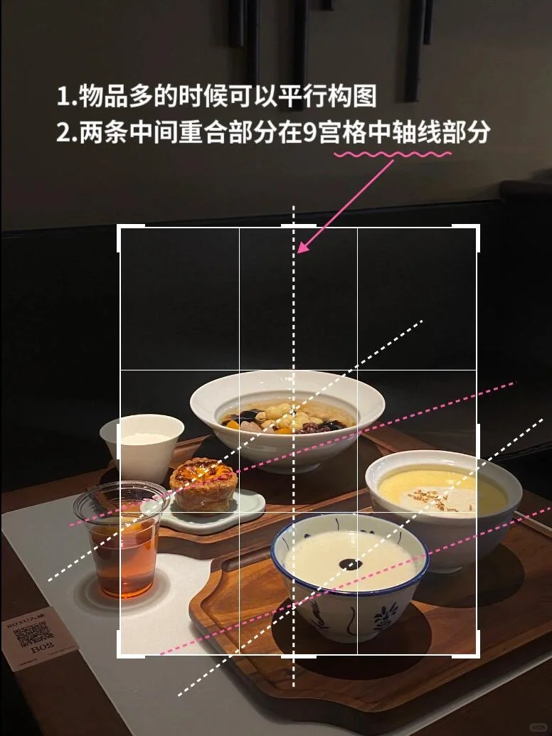 2⃣️甜品少的可以三角构图 或者一前一后一左一右摆放