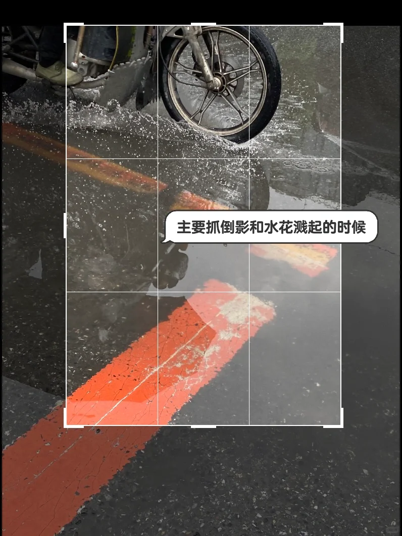 1⃣️找积水稍微多一点的地方 等车过的时候拍水花溅起的瞬间