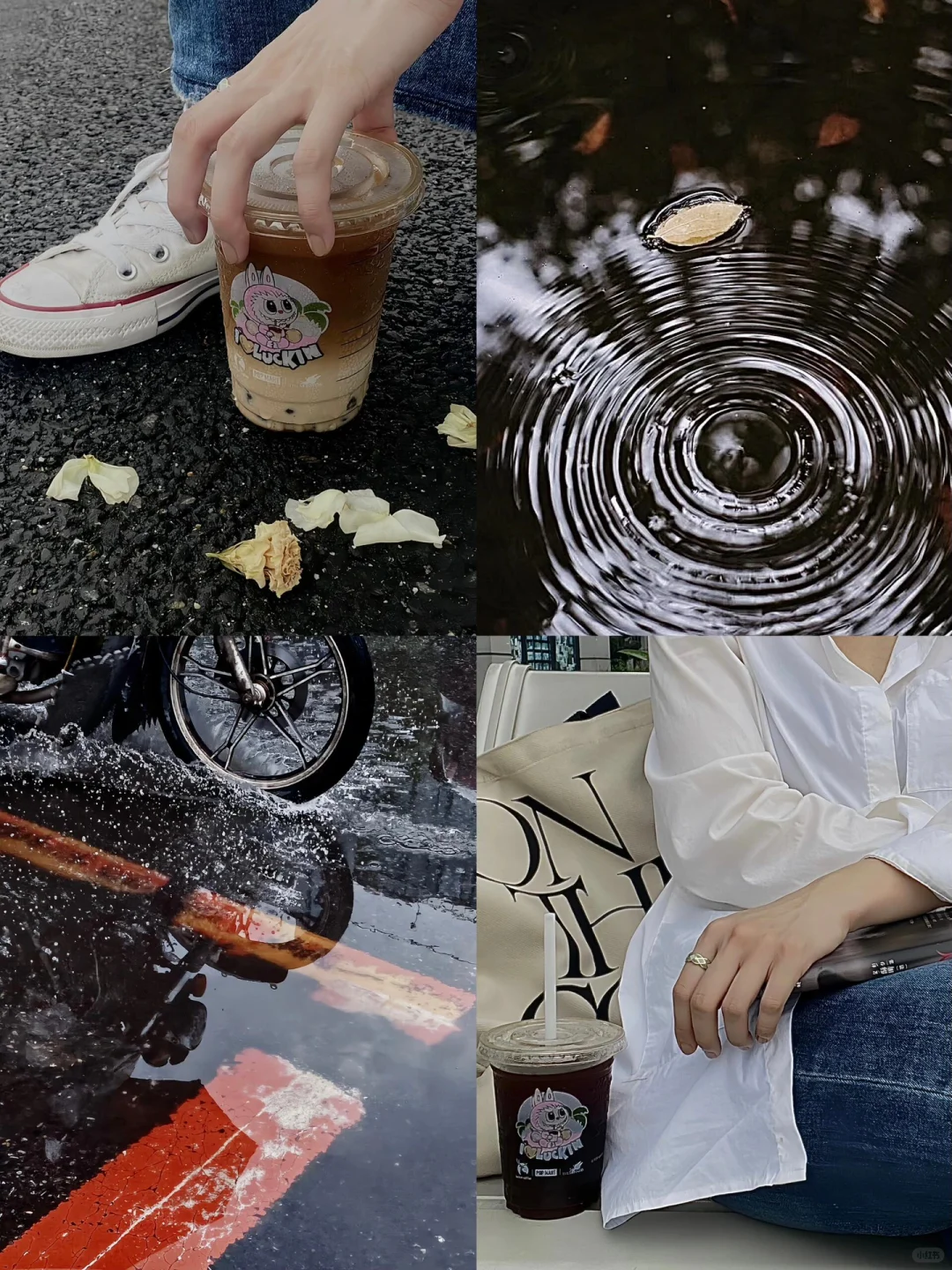 3⃣️下雨的时候雨滴落下会有涟漪 可以抓拍 如果没有落雨滴可以丢小石头之类在积水上 也会有涟漪
