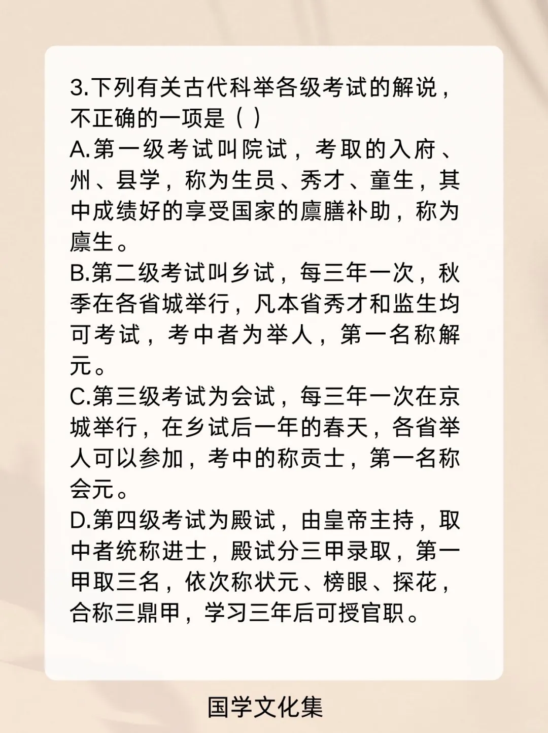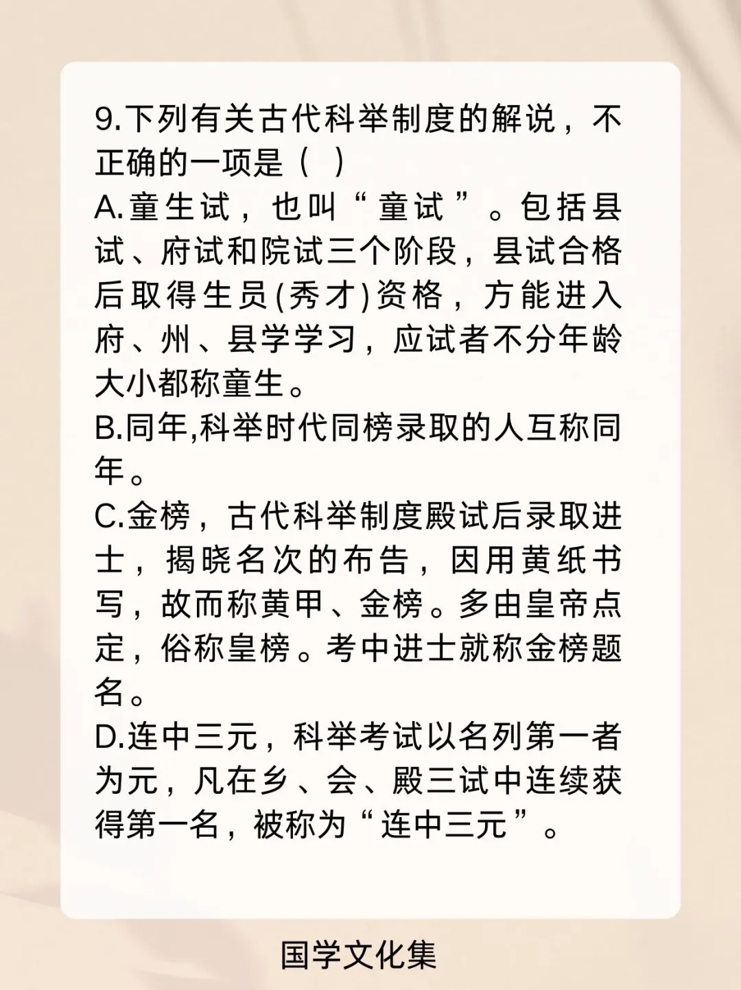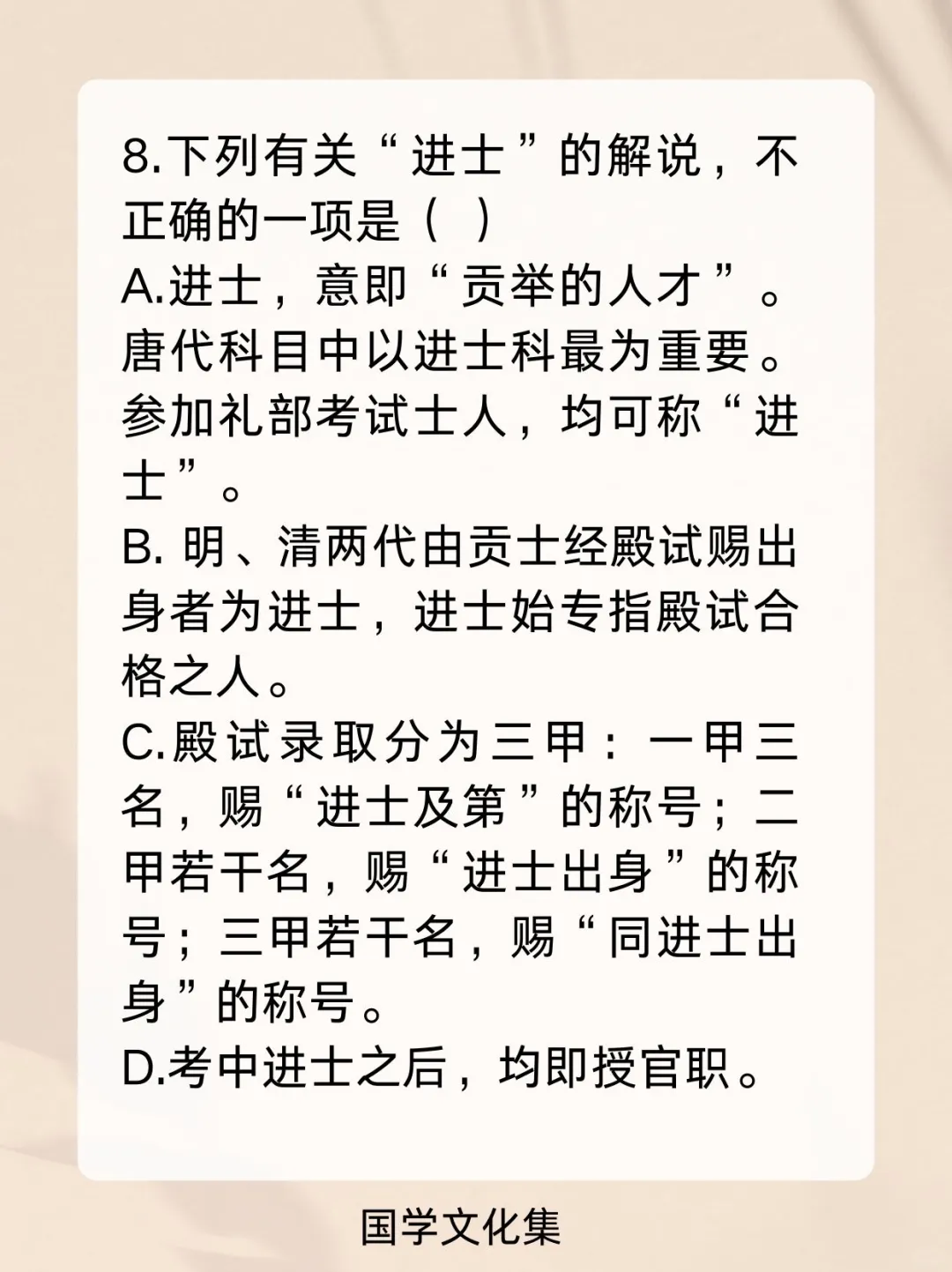 弘扬中华传统文化 文化常识 文学常识 科举制度 高考 公考打卡 考编 公基常识每日一练一打卡