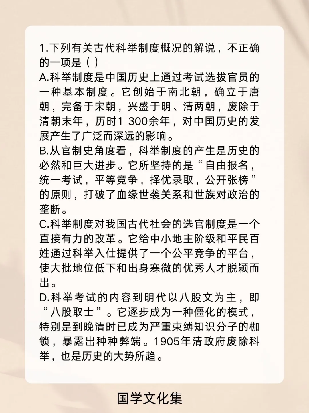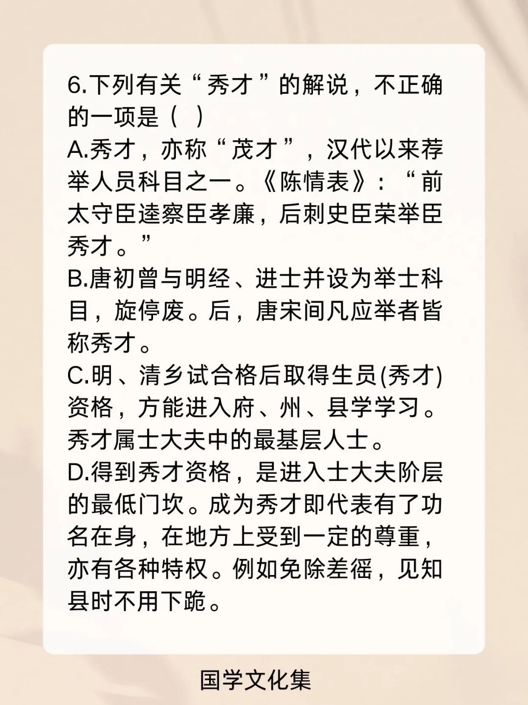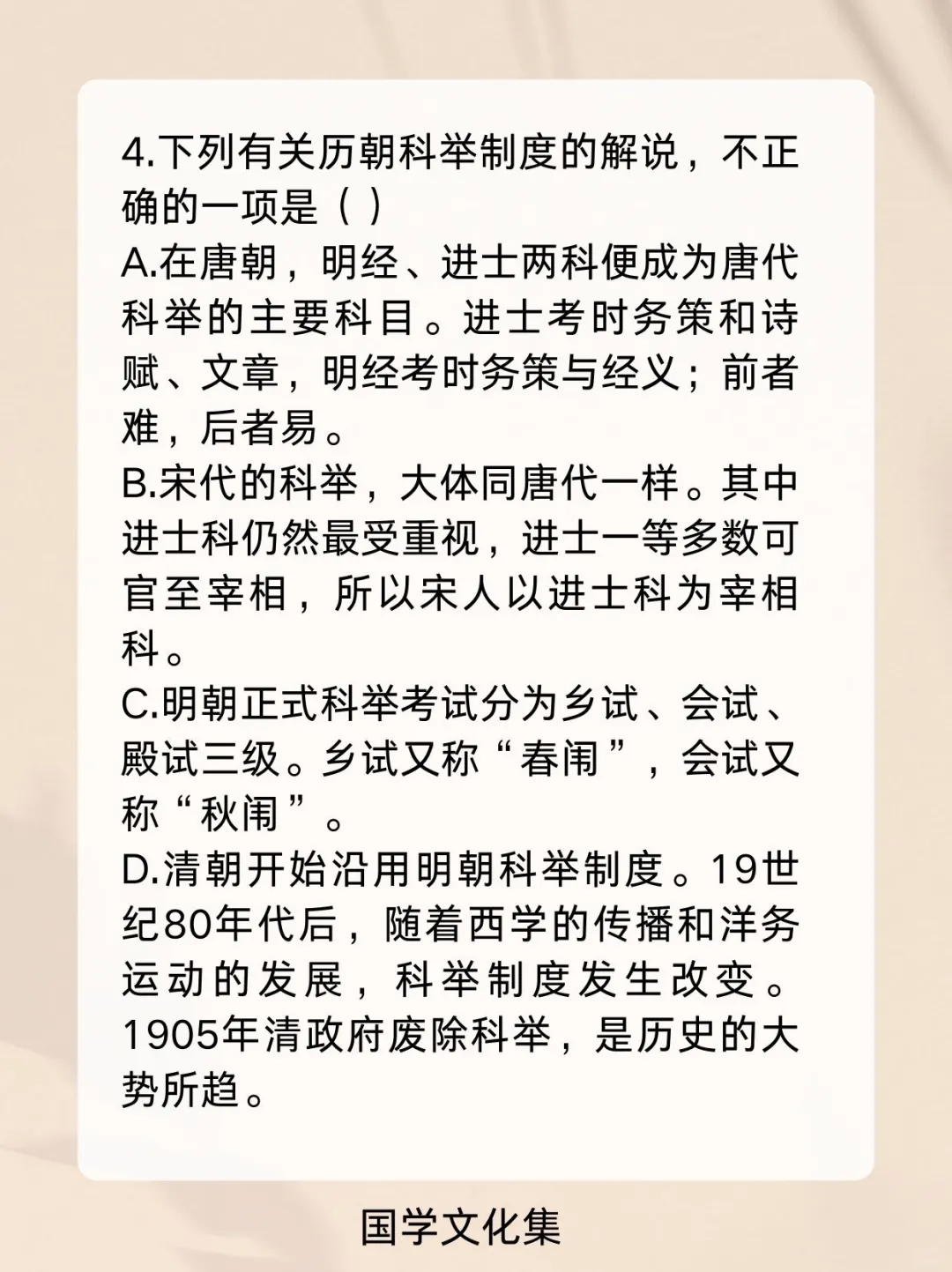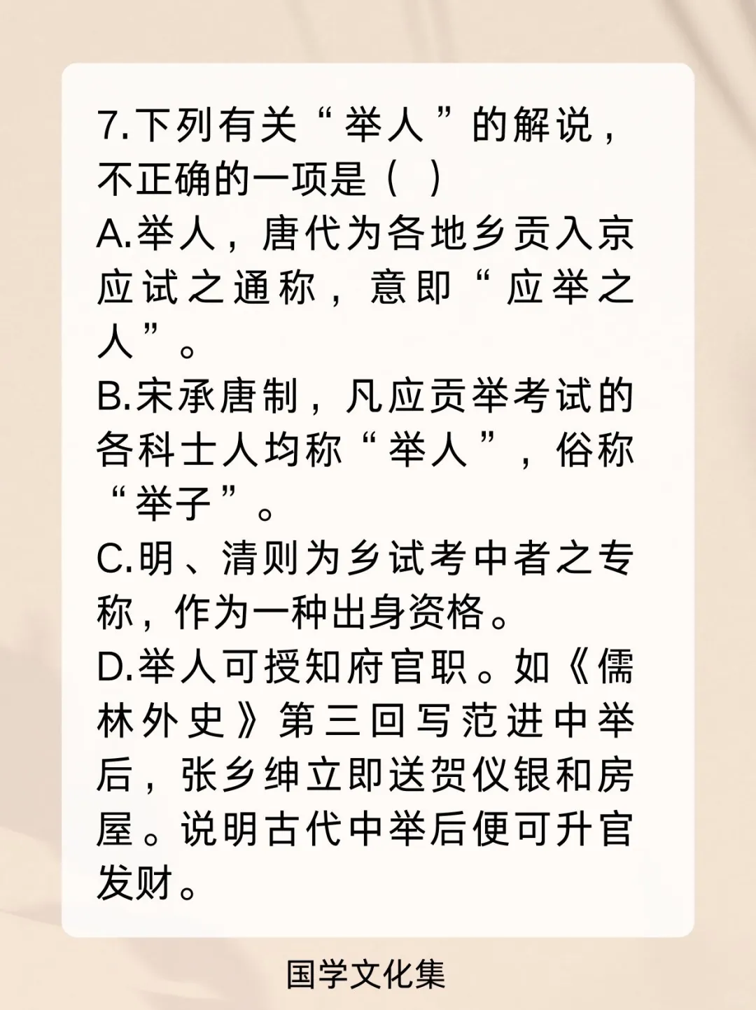 弘扬中华传统文化 文化常识 文学常识 科举制度 高考 公考打卡 考编 公基常识每日一练一打卡