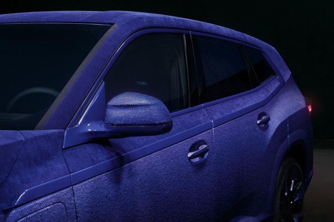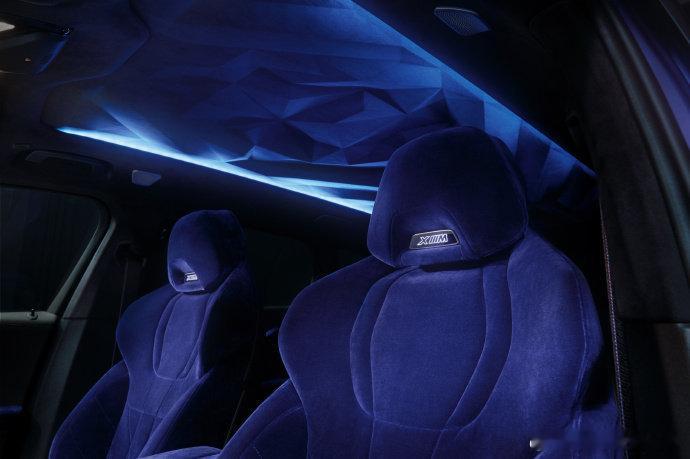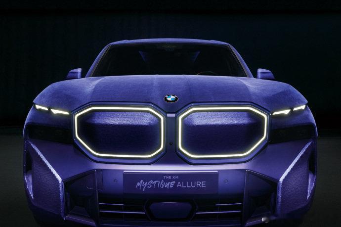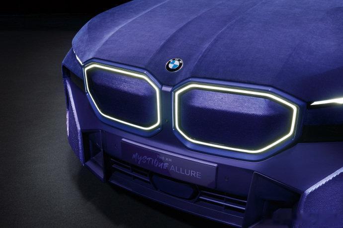 这款特别版车型采用了紫色天鹅绒材质覆盖车身,并在中网、前包围和外后视镜等细节处装饰以紫色亮片,轮辋也与车身同色,全是紫色。包括内饰,与现款宝马XM保持一致,但内部装饰采用了与外观颜色相近的天鹅绒材质,并在后排座椅上缝制了新纹路。