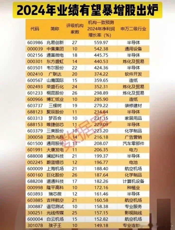 2024年业绩有望暴增的公司名单出炉!(机构预测业绩,仅供参考!)