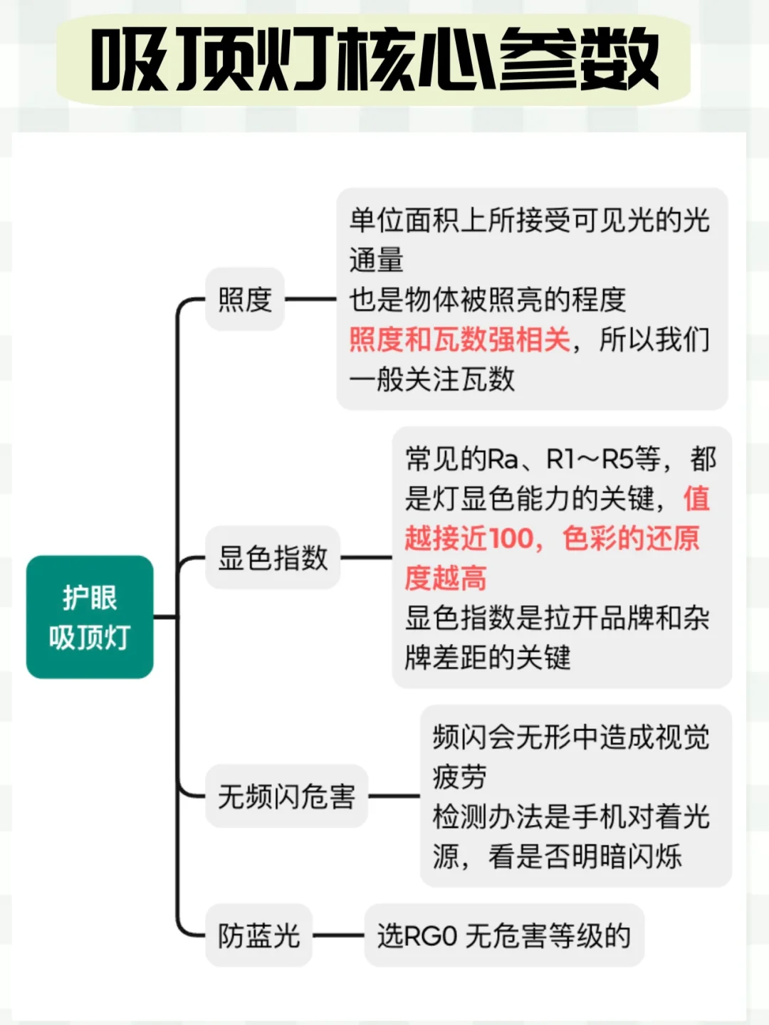 护眼吸顶灯的挑选,盯紧下面这些参数: