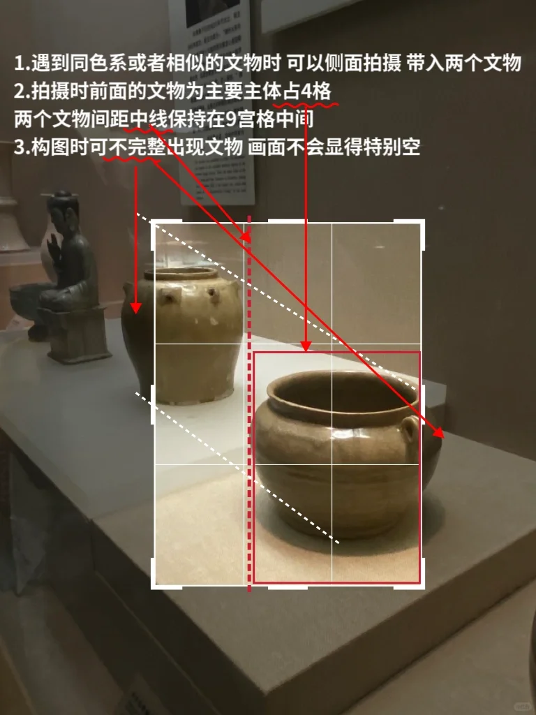 ⭕️拍摄时一堆人挤在前面看 根本拍不到完整的文物怎么办