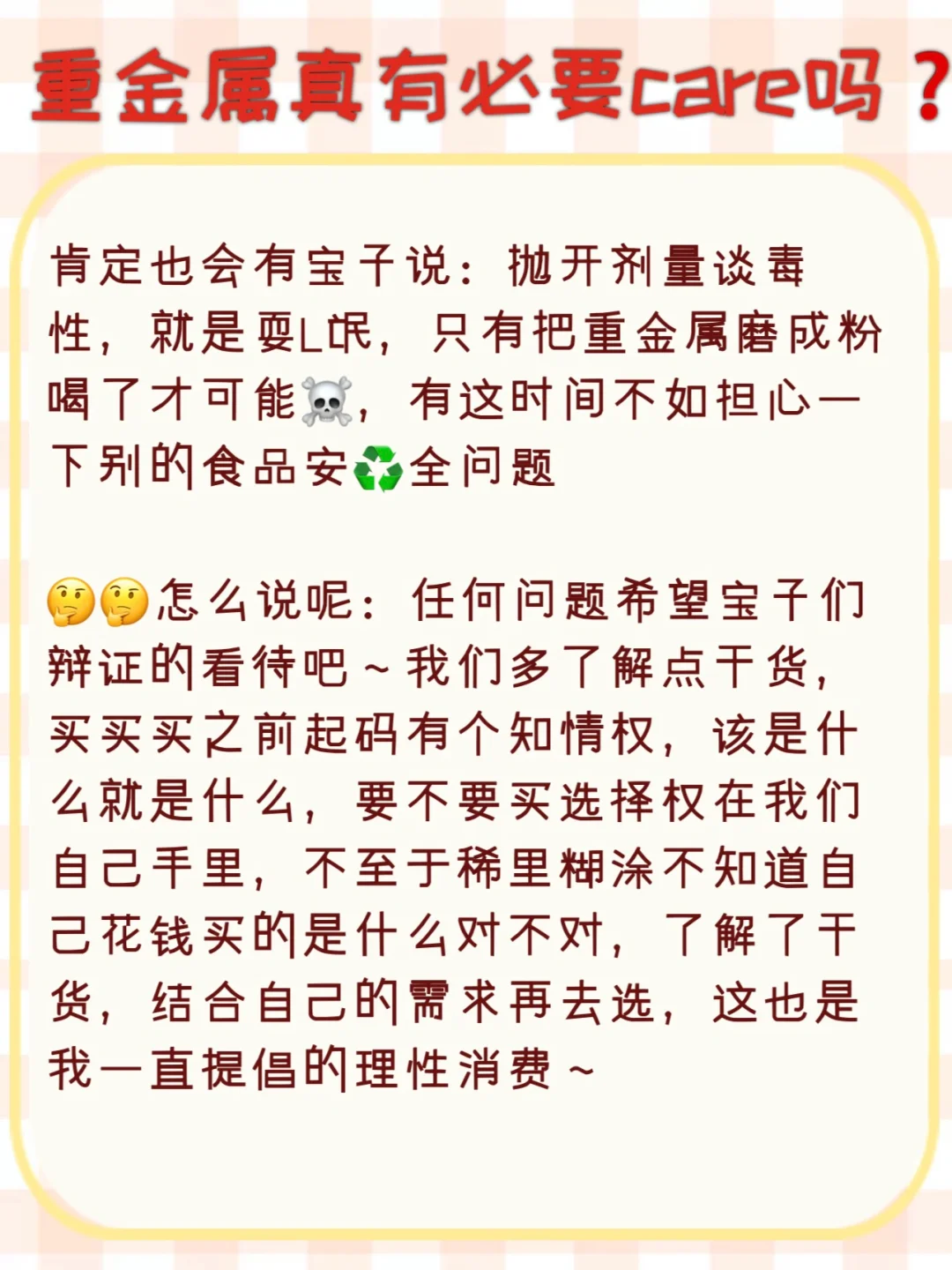 肯定也会有宝子说:抛开剂量谈毒性,就是耍L氓,只有把重金属磨成粉喝了才可能☠️,有这时间不如担心一下别的食品安♻️全问题