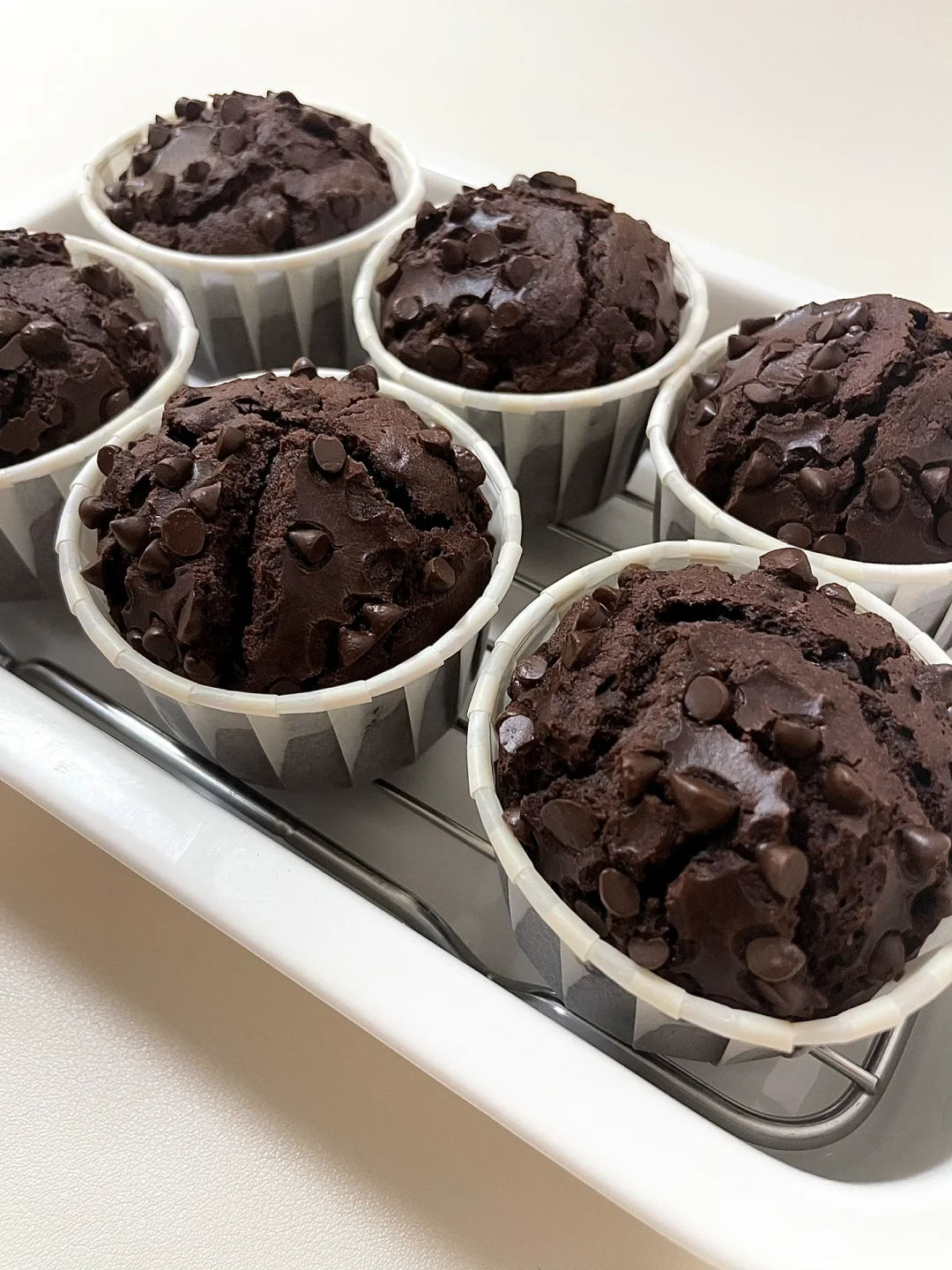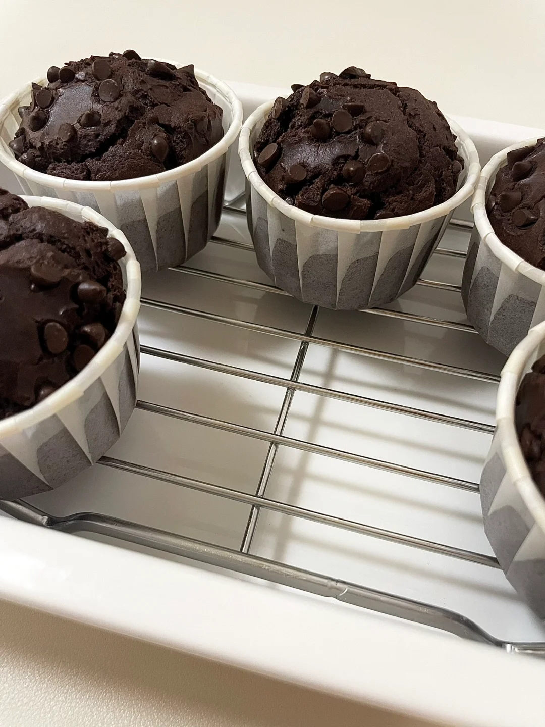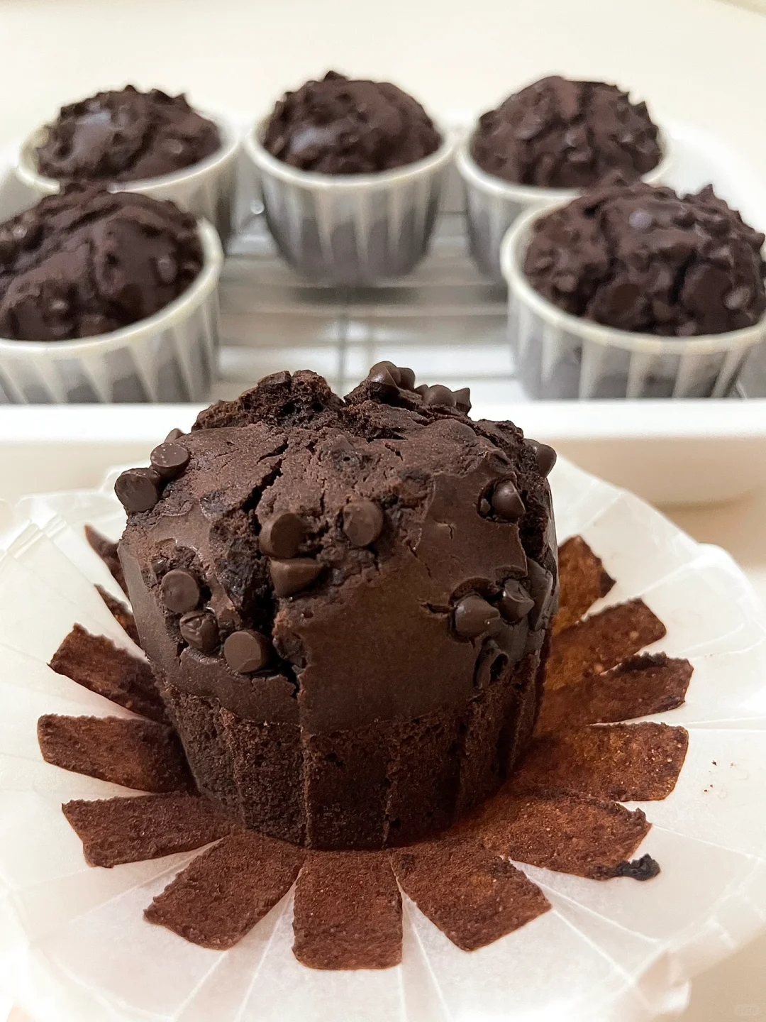 🍫做过无数次的巧克力麦芬蛋糕了,每次都在调整配方,终于做出了我最满意的版本,蛋糕体不甜不油腻,夹心的黑巧克力融化在嘴里,一丝丝苦甜,绝了!