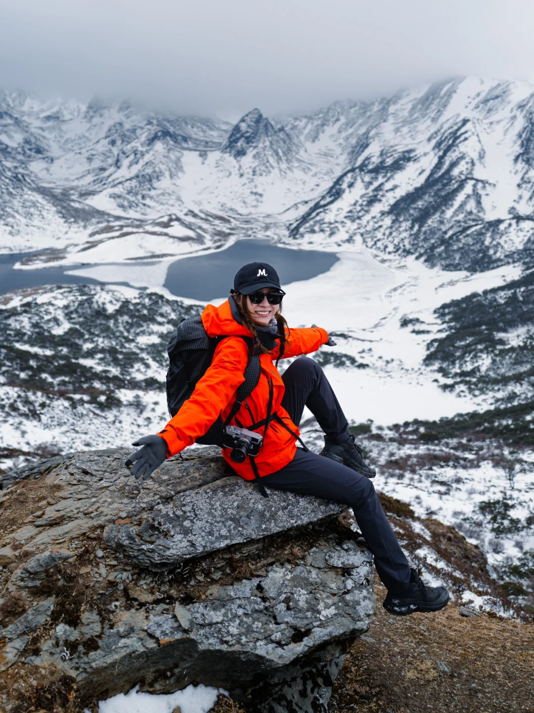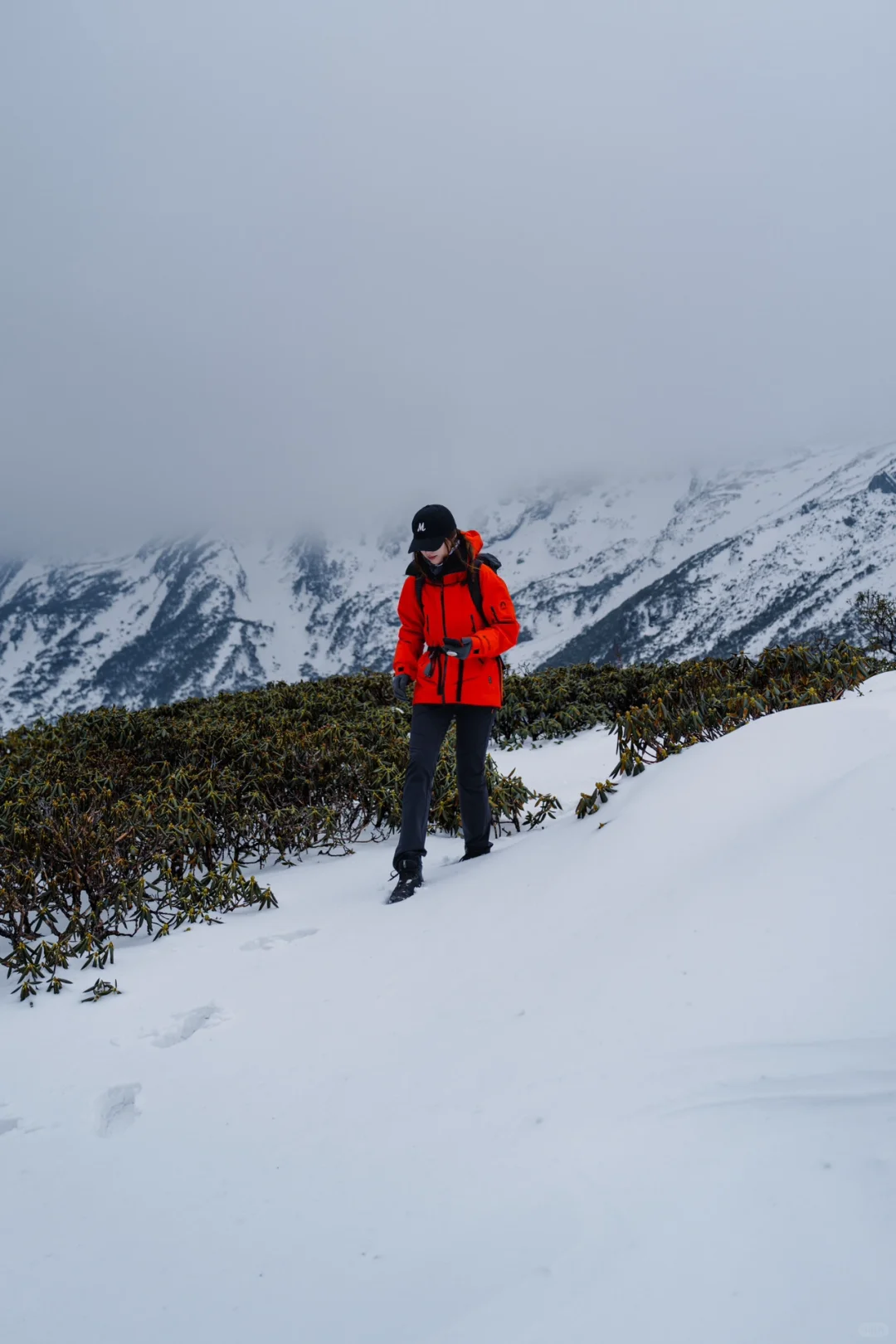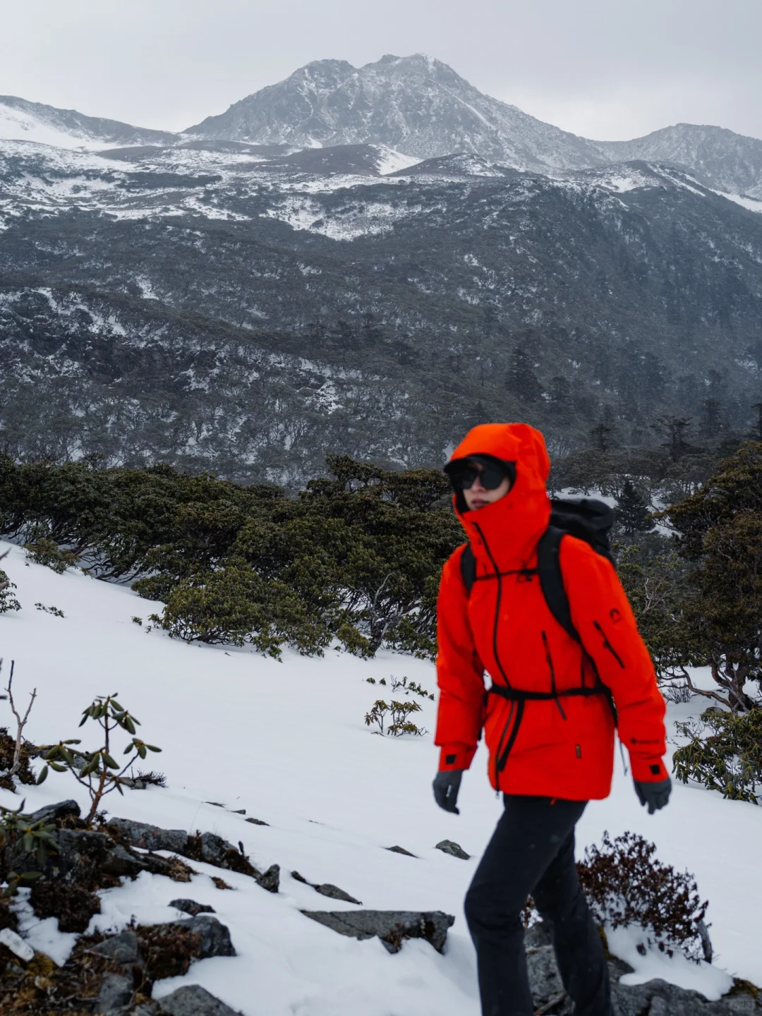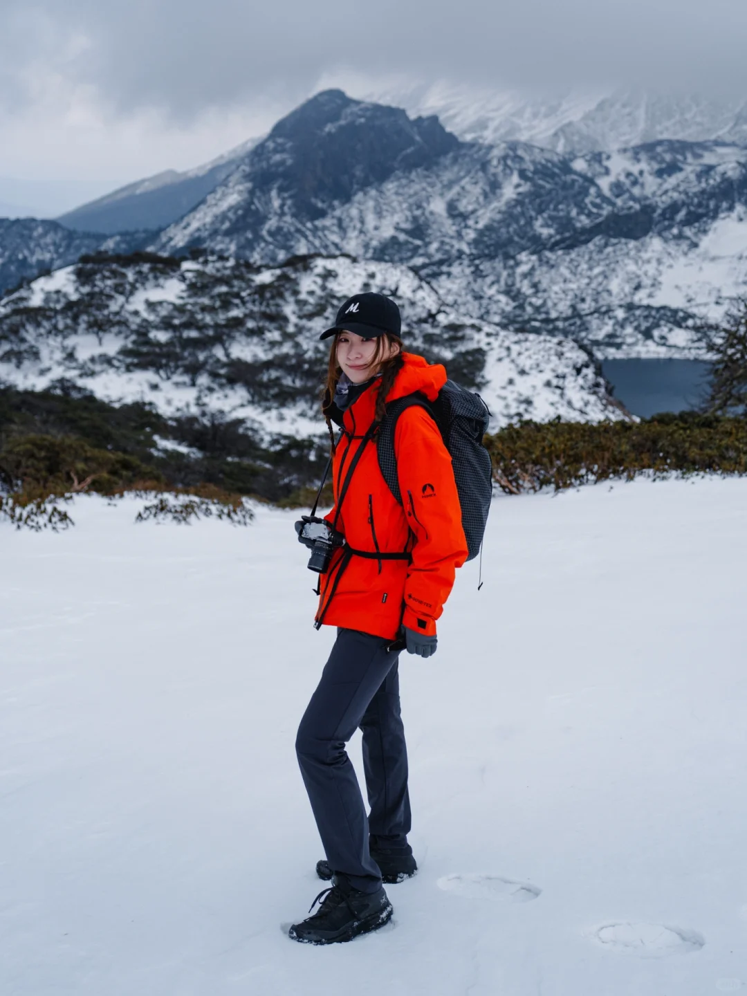 四月 是大自然重新勾勒世界的季节 哈巴山巅的雪几乎接触天际 而山脚下的土地已被春意唤醒 呼吸中都夹杂着泥土与野花的气息 站在山巅远眺 我看到 那白得几乎透明的雪与天空汇成一张画纸 将山脉切割成万条河流,汇入了黑海湖中 也许是夹杂雪花的冷风吹过 也许是眼前的景色带来的冲击和震撼 忍不住鼻尖一酸,眼红红 安静的山巅有着小小而醒目的我 身穿着HIMEX33橙色硬壳冲锋衣GORE-TEX防水面料 从山下的温暖来到山巅的寒冷 腋下透气拉链让温度调节很灵活 抗风御雨能让我在风雨中驻足 尽情感受着雪山之美~