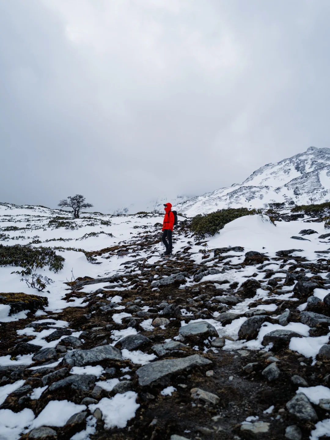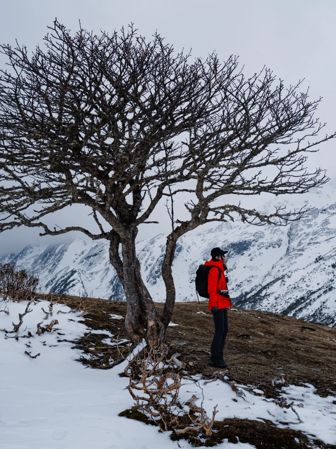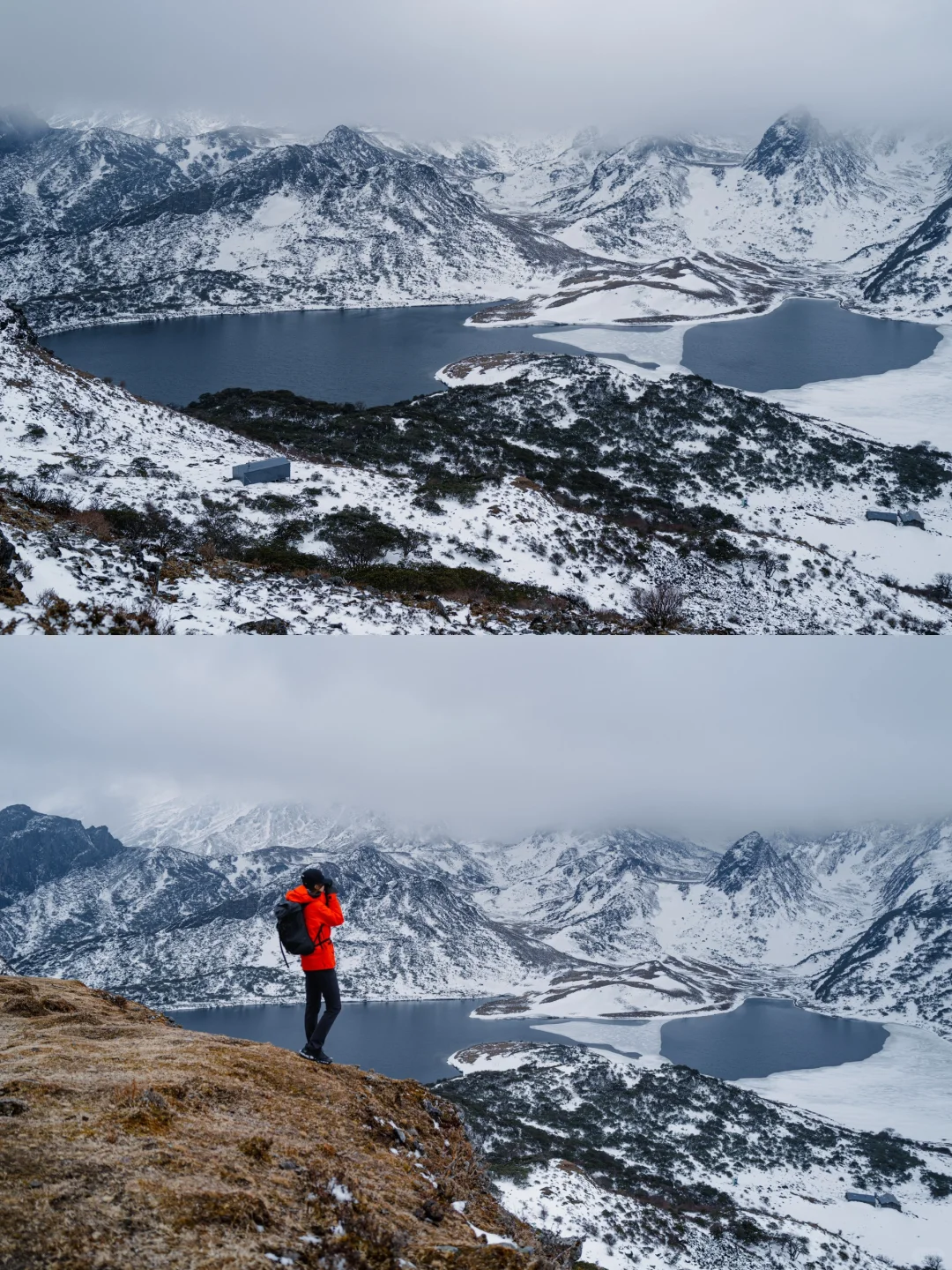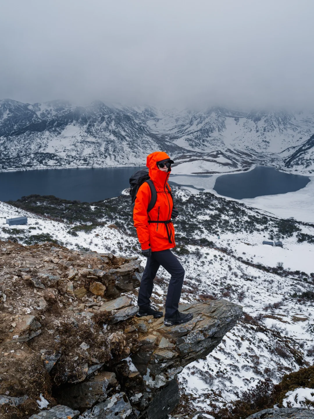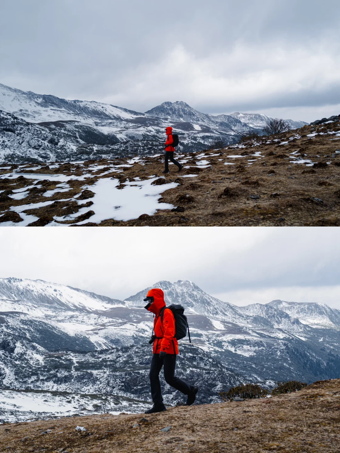 四月 是大自然重新勾勒世界的季节 哈巴山巅的雪几乎接触天际 而山脚下的土地已被春意唤醒 呼吸中都夹杂着泥土与野花的气息 站在山巅远眺 我看到 那白得几乎透明的雪与天空汇成一张画纸 将山脉切割成万条河流,汇入了黑海湖中 也许是夹杂雪花的冷风吹过 也许是眼前的景色带来的冲击和震撼 忍不住鼻尖一酸,眼红红 安静的山巅有着小小而醒目的我 身穿着HIMEX33橙色硬壳冲锋衣GORE-TEX防水面料 从山下的温暖来到山巅的寒冷 腋下透气拉链让温度调节很灵活 抗风御雨能让我在风雨中驻足 尽情感受着雪山之美~