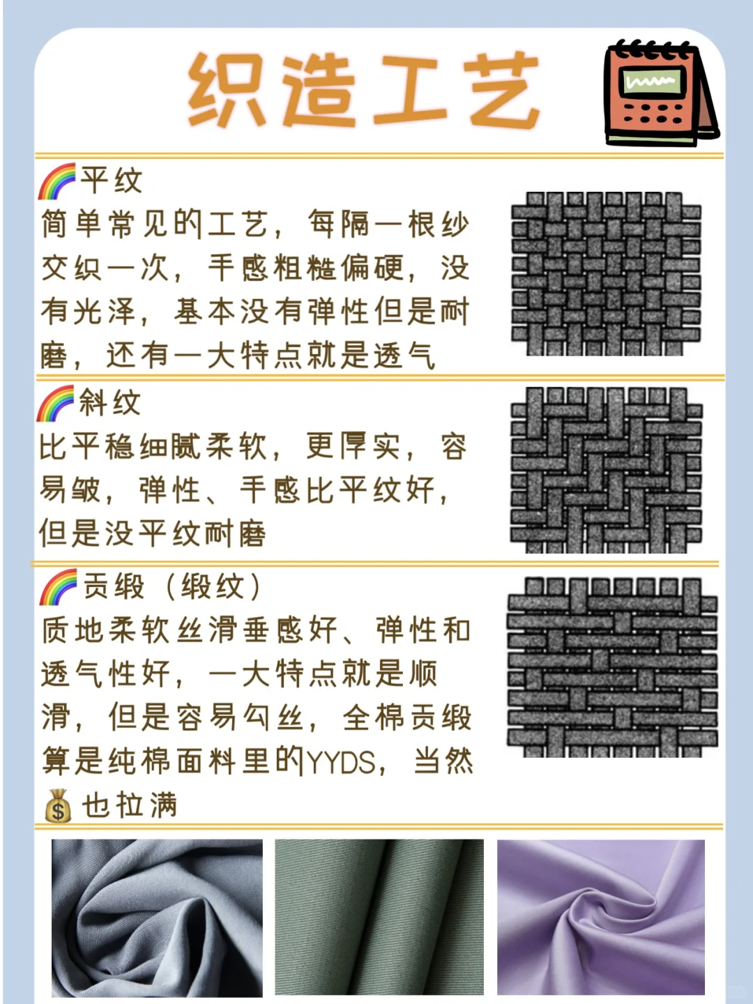 比平稳细腻柔软,更厚实,容易皱,弹性、手感比平纹好,但是没平纹耐磨