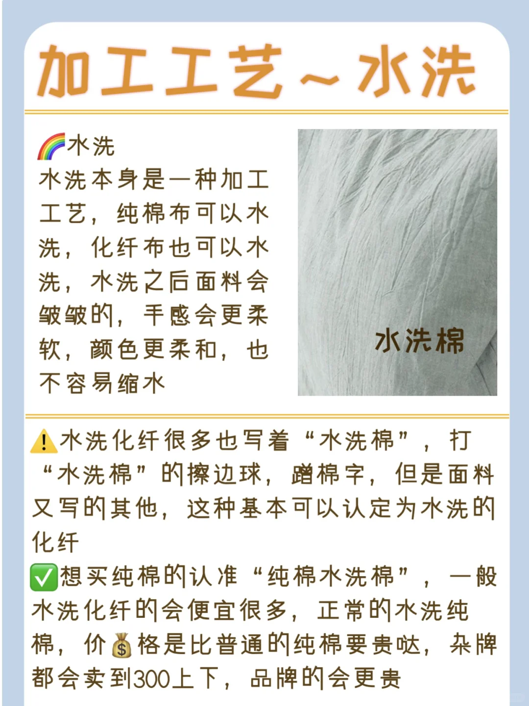 ⚠️水洗化纤很多也写着“水洗棉”,打“水洗棉”的擦边球,蹭棉字,但是面料又写的其他,这种基本可以认定为水洗的化纤