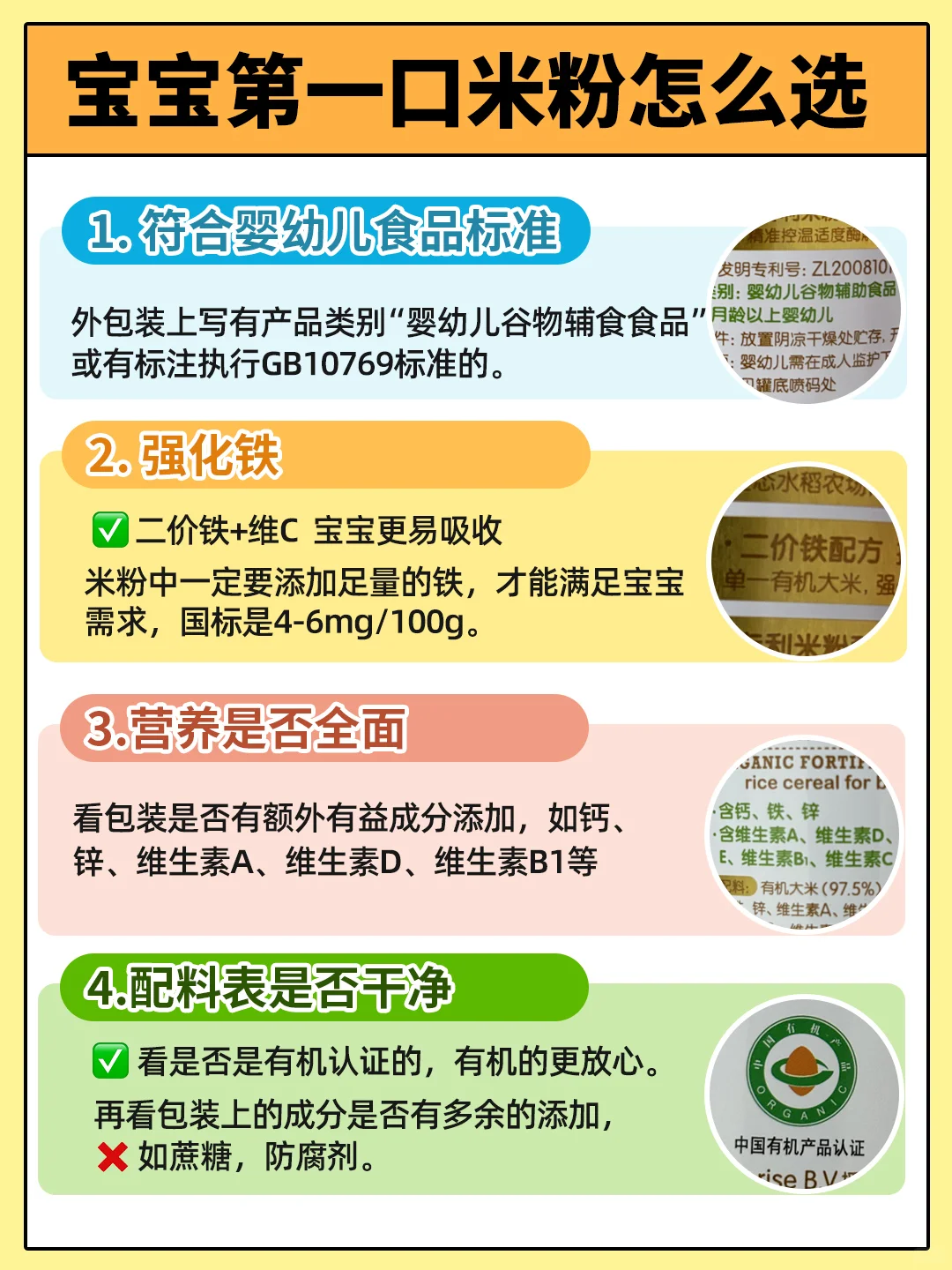 2️⃣【营养】选择二价铁和维生素C的搭配,吸收率是三价铁的3倍左右。铁含量要符合国标标准是4-6mg/100g,才能满足宝宝需求