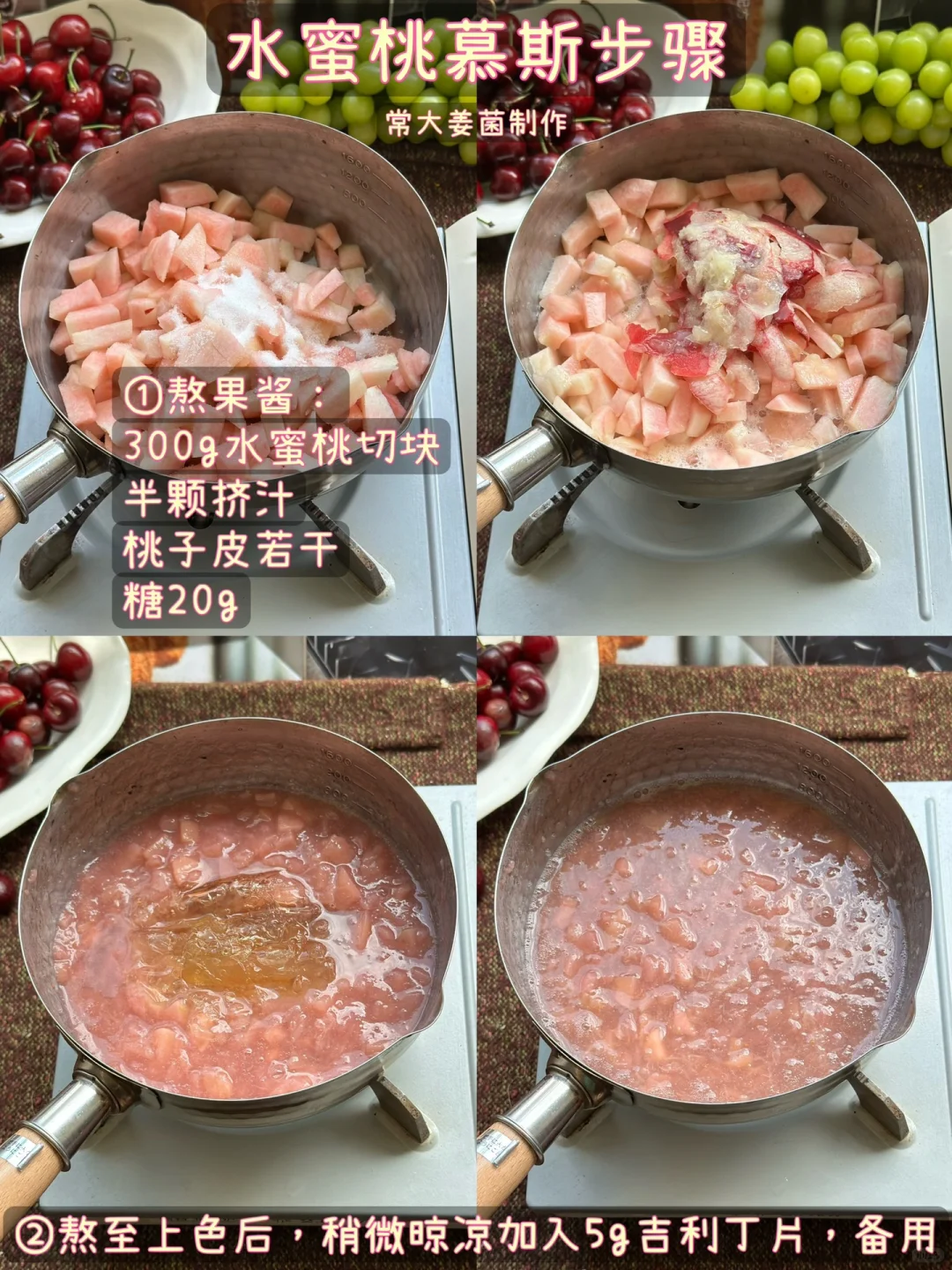夏天的香甜水蜜桃🍑上市了!! 每年夏天桃子吃到爽~~ 俗话说:🍑桃养人,咱们当然要熬桃子酱~ 抹面包吃、做饮品、做甜品都棒棒!!