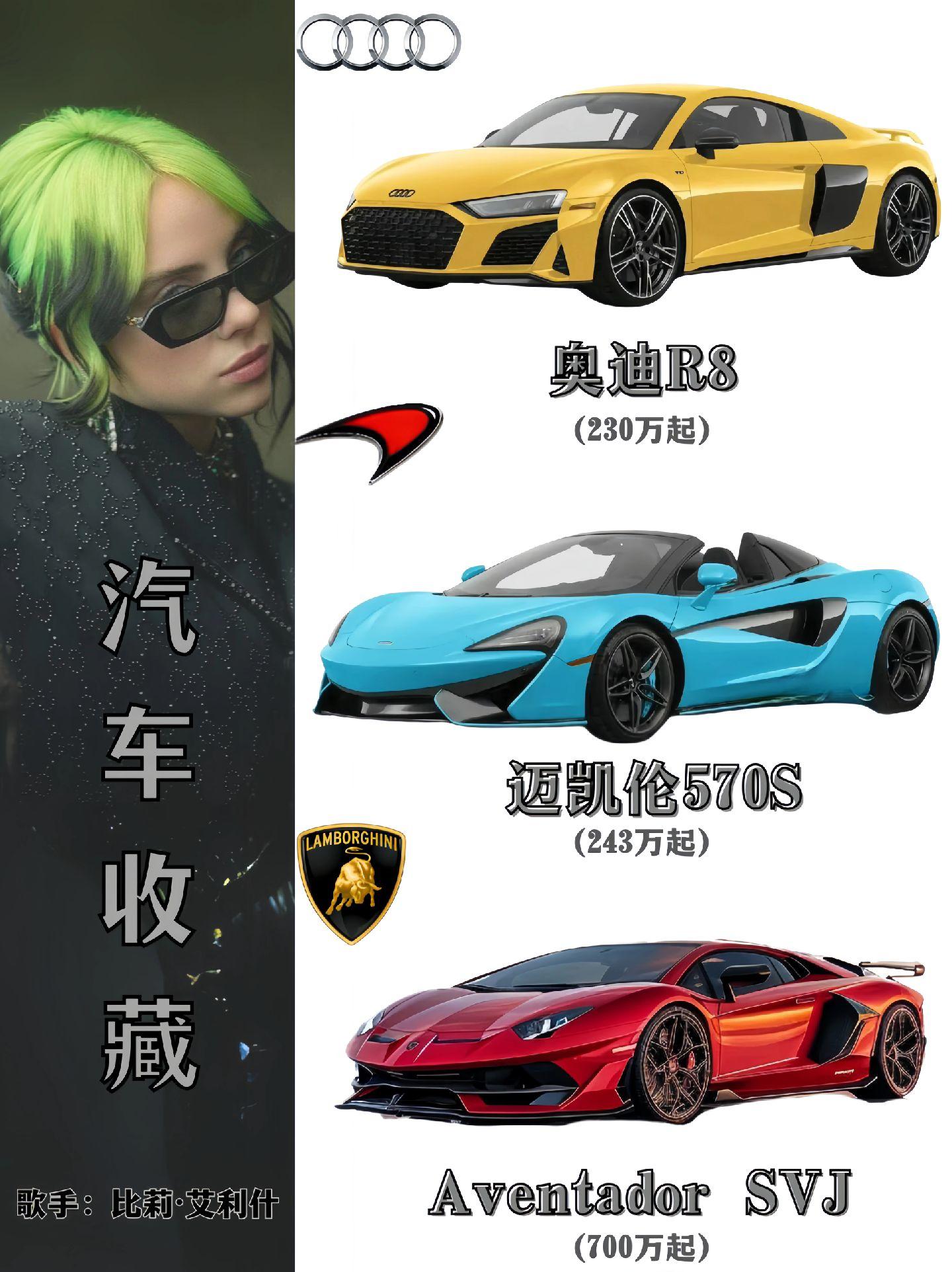 歌手:比莉·艾利什的汽车收藏有哪些?你最喜欢哪一个?