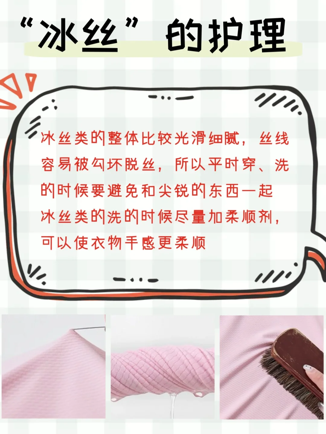 冰丝类的洗的时候尽量加柔顺剂,可以使衣物手感更柔顺
