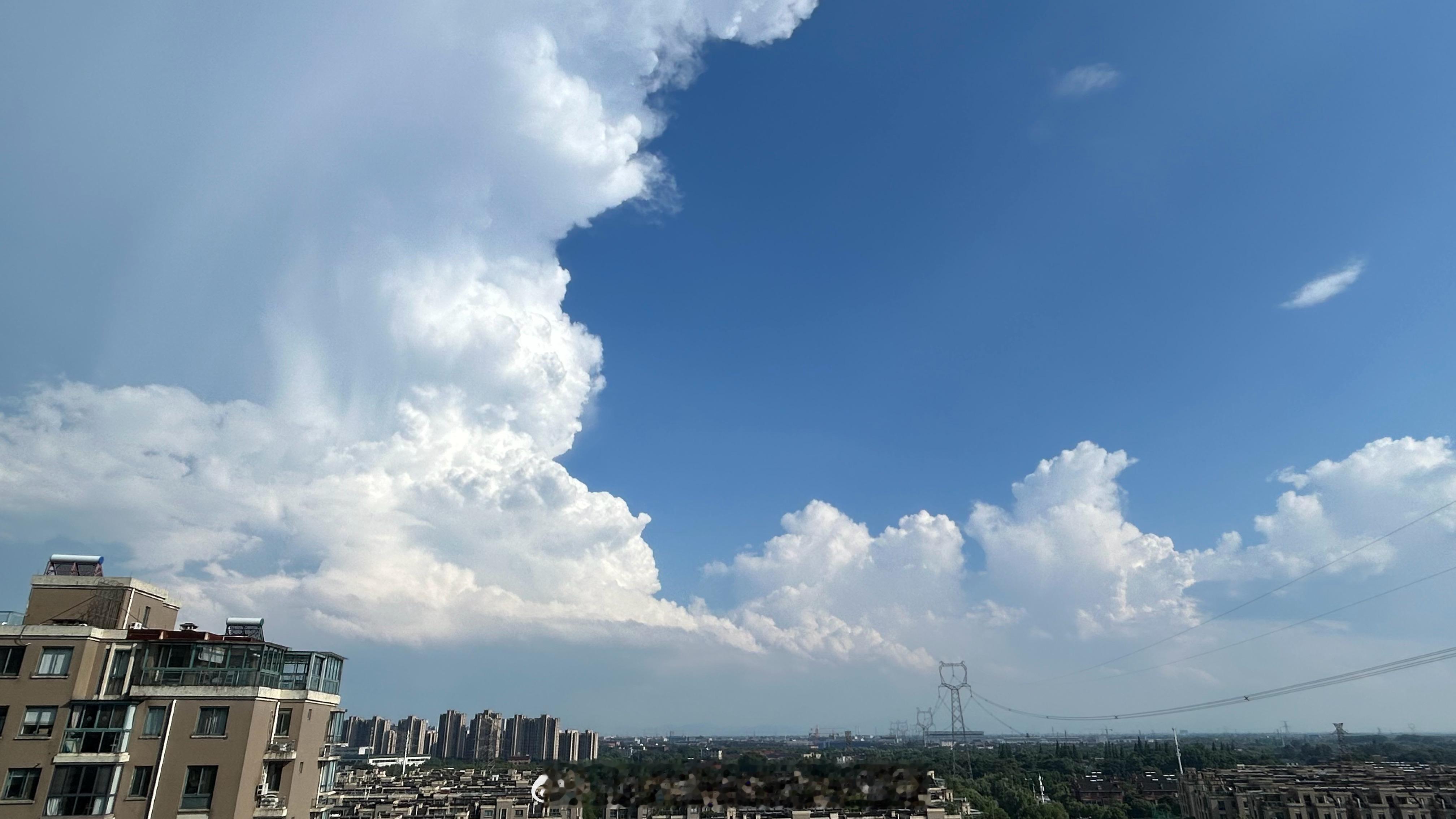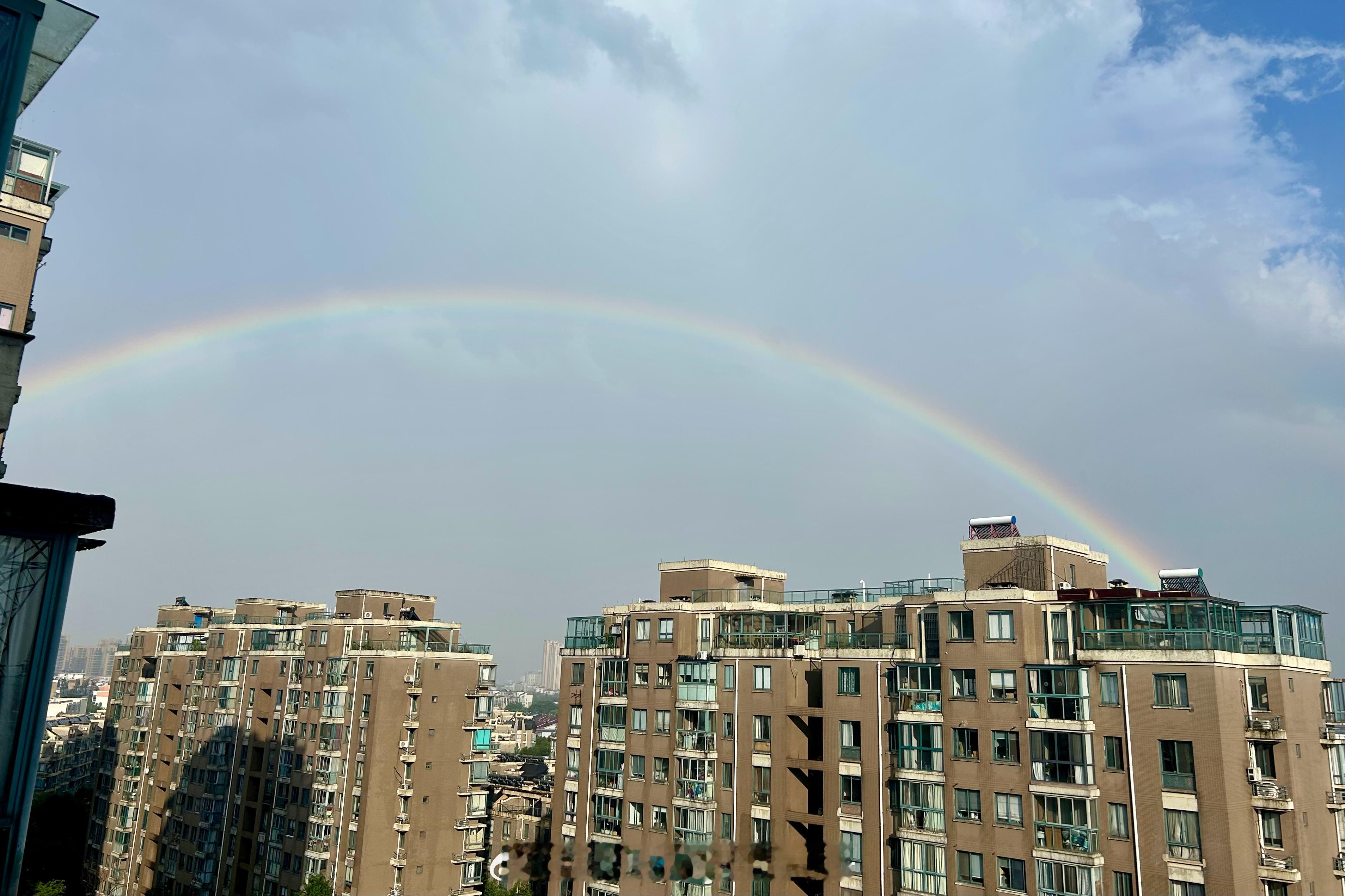 记一场太阳雨下的彩虹!还拍到了雨滴的形状(☔️´・ω・)夏天的蓝天白云很美☁️