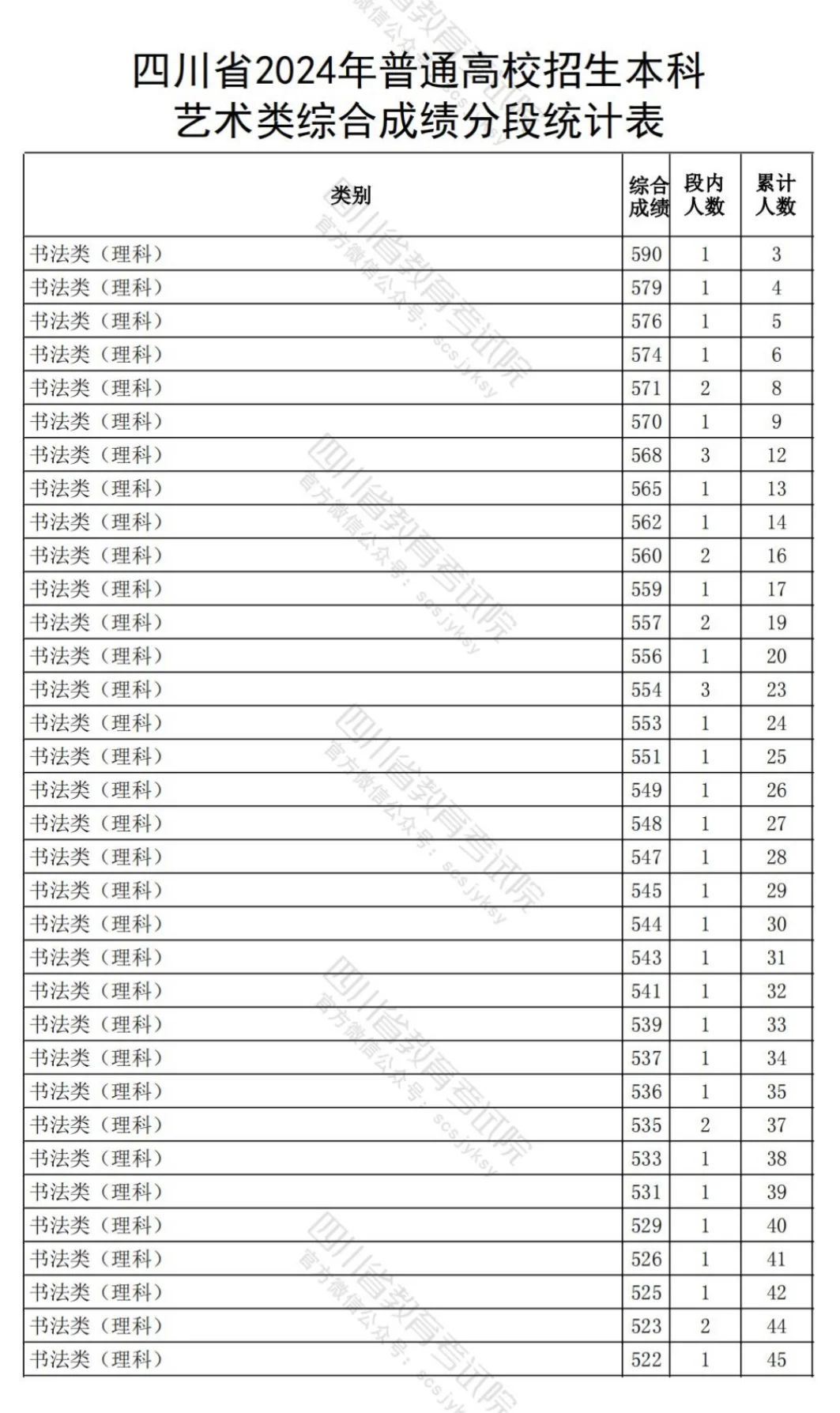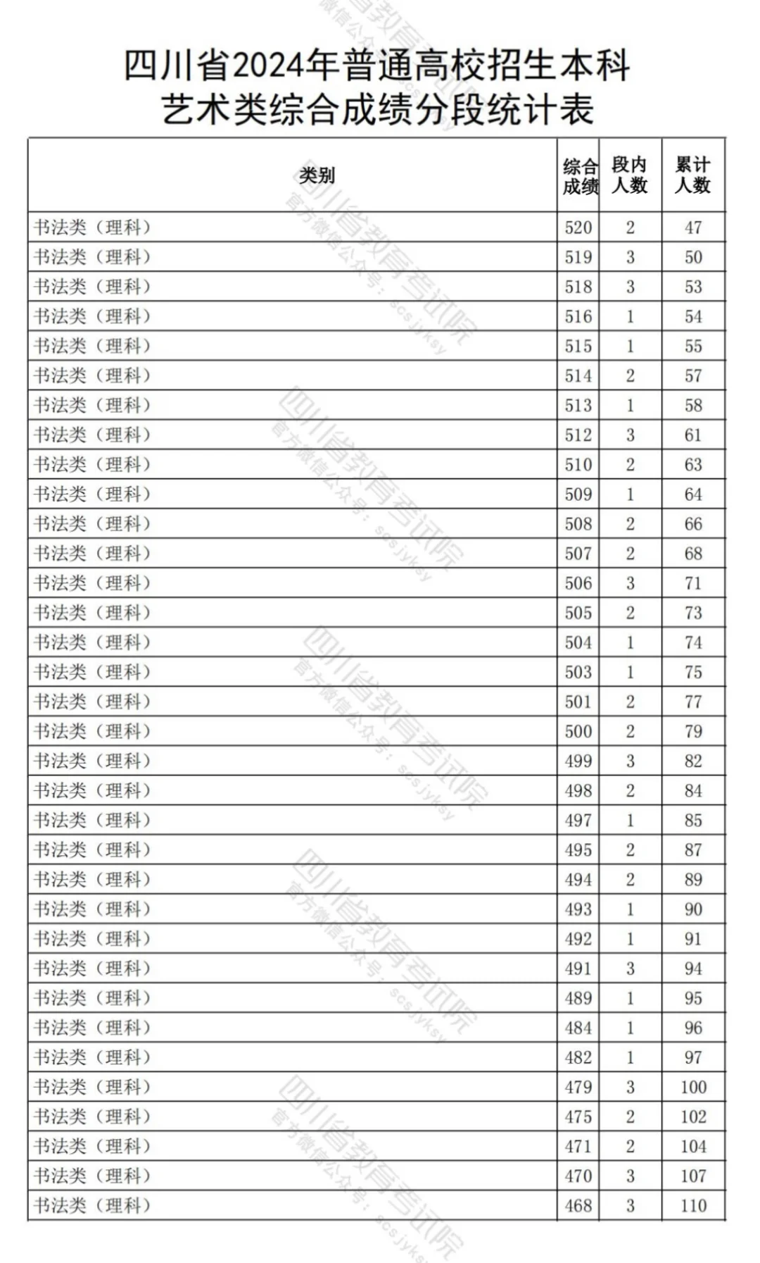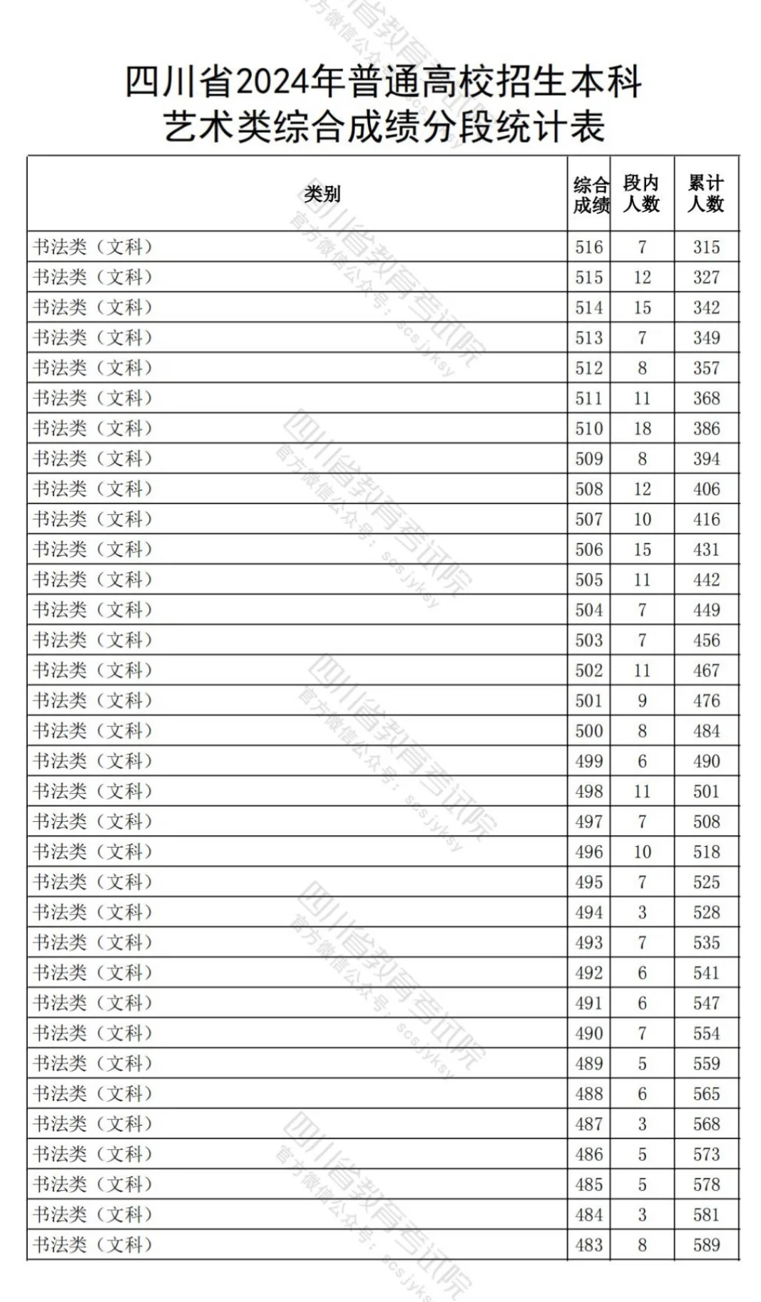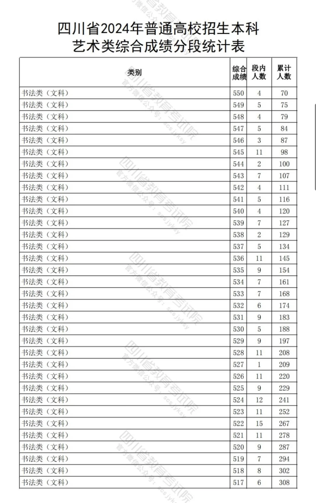 四川2024书法综合分,分段统计表!