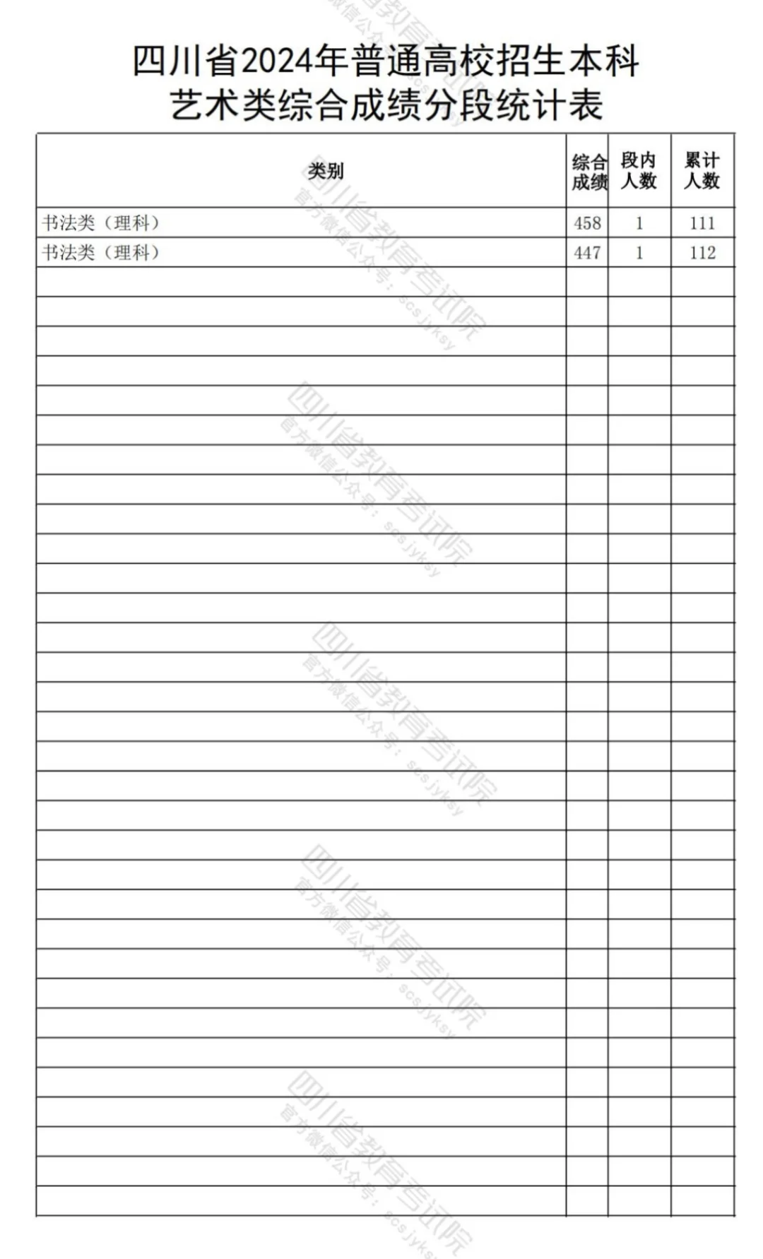 2024四川书法录取位次(预估)