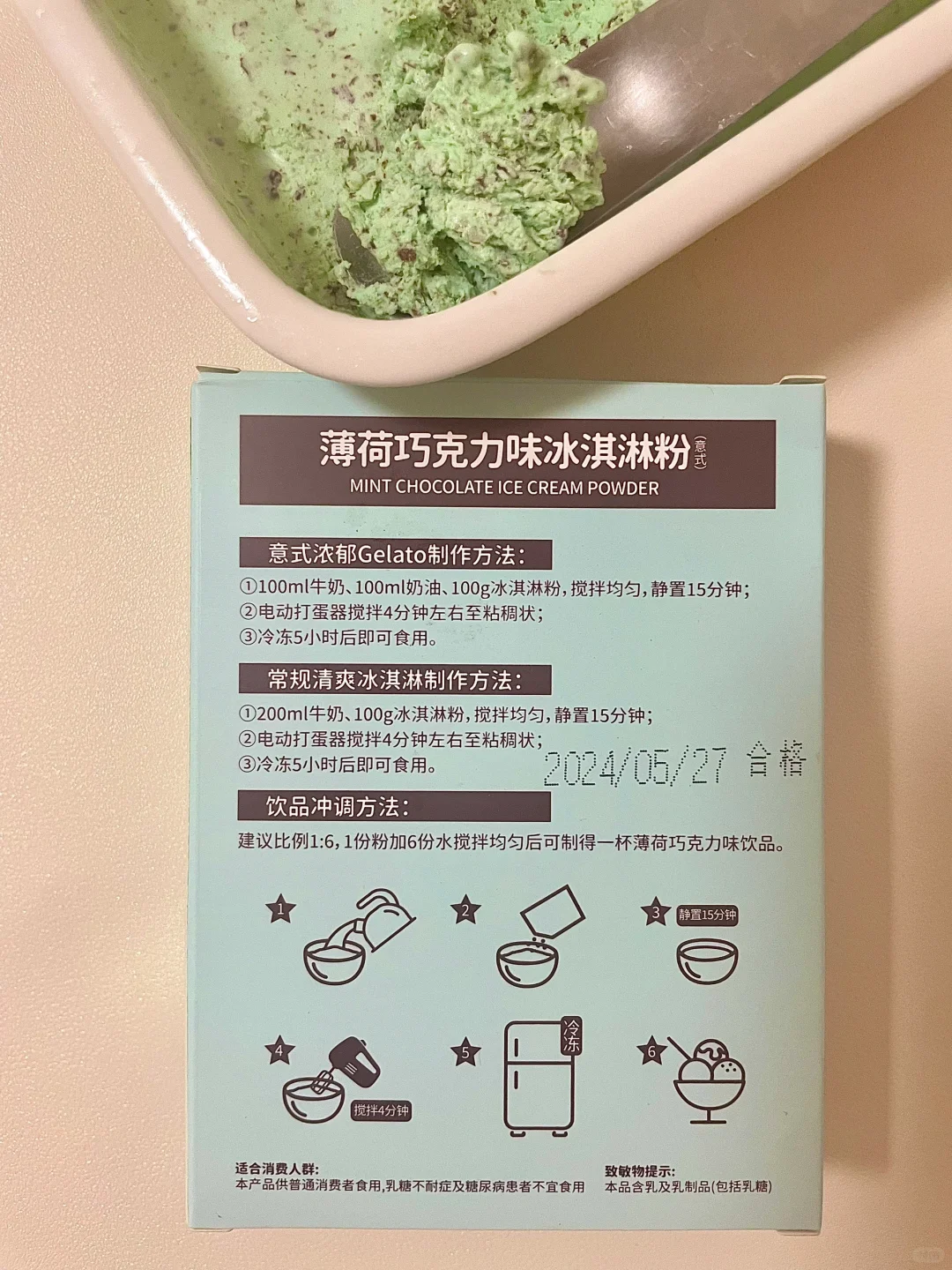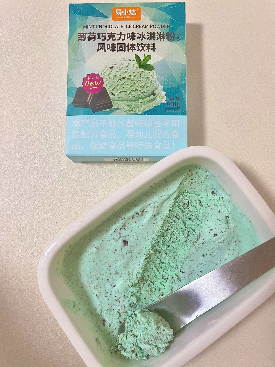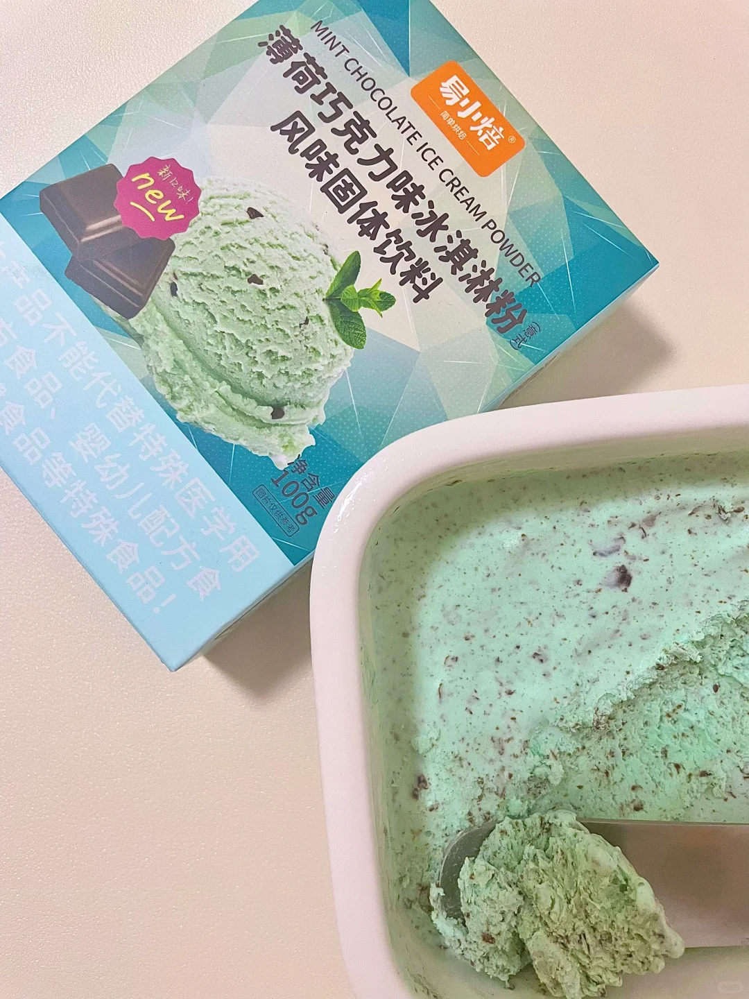 🔥这个夏天,巧克力薄荷冰淇淋可太火啦! 易小焙冰淇淋粉也出了巧克力薄荷口味! 👉冰淇淋粉加水,搅打均匀,冷冻后就OK~ 薄荷口味很浓郁,吃一口透心凉! 丝滑没有冰碴儿~ 巧克力在口中若隐若现,口感很丰富!