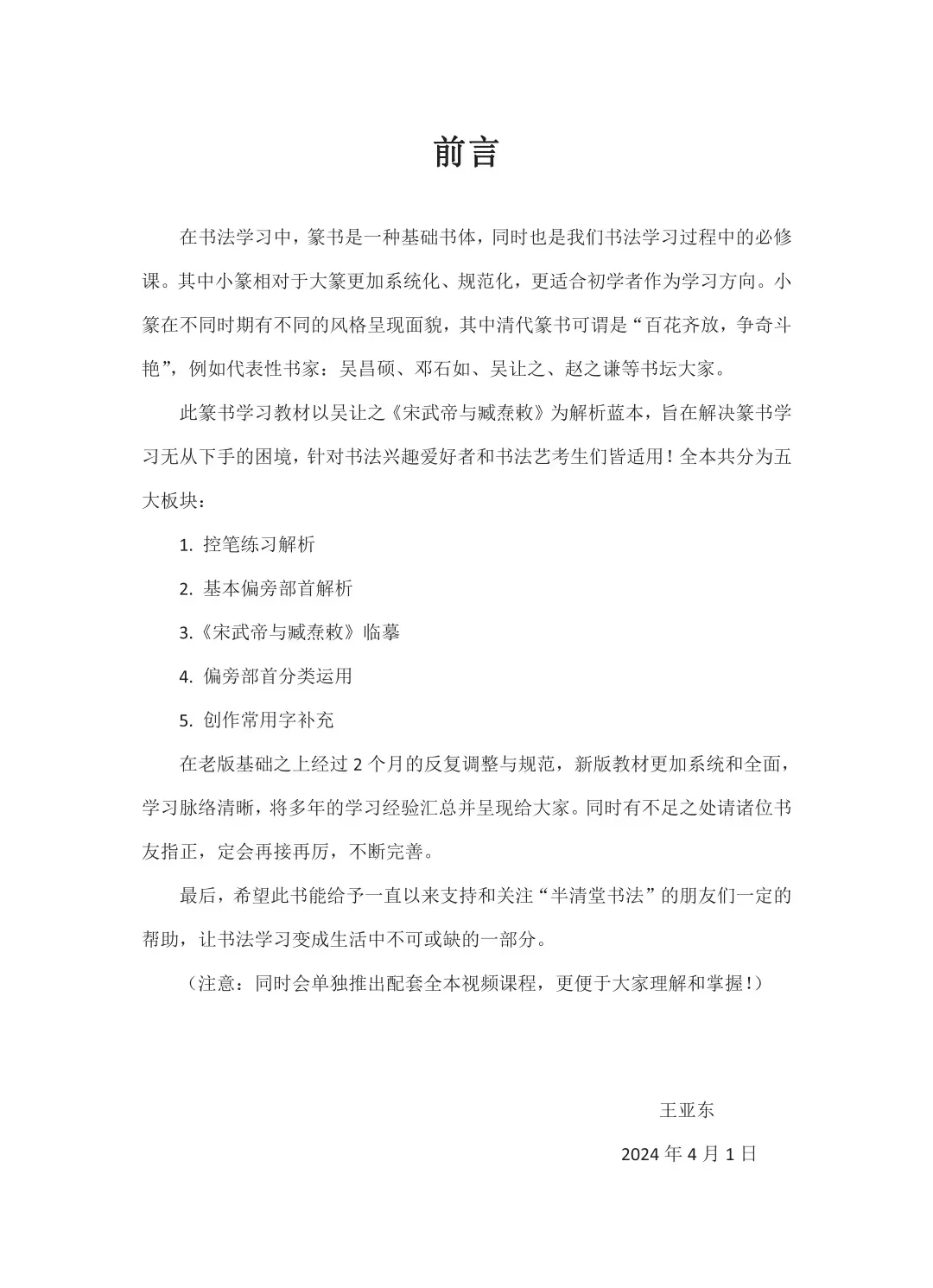 全本160页,共分为5个部分: 1:控笔练习解析 2:基本偏旁部首解析(41个) 3:《宋武帝》通临 4:偏旁部首分类运用,88个偏旁(共352字) 5:创作常用字补充! 同时单独出售配套全本视频课程30节,掌握学习方法,提高学习效率,视频课仅299,同时每周统一评讲作业一次!