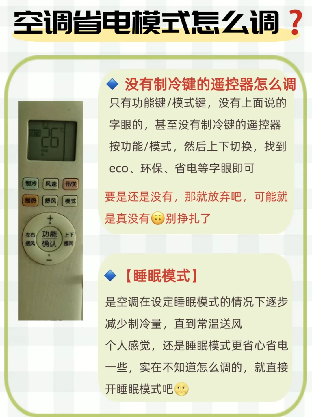1⃣️温度调到26度(或者以上)