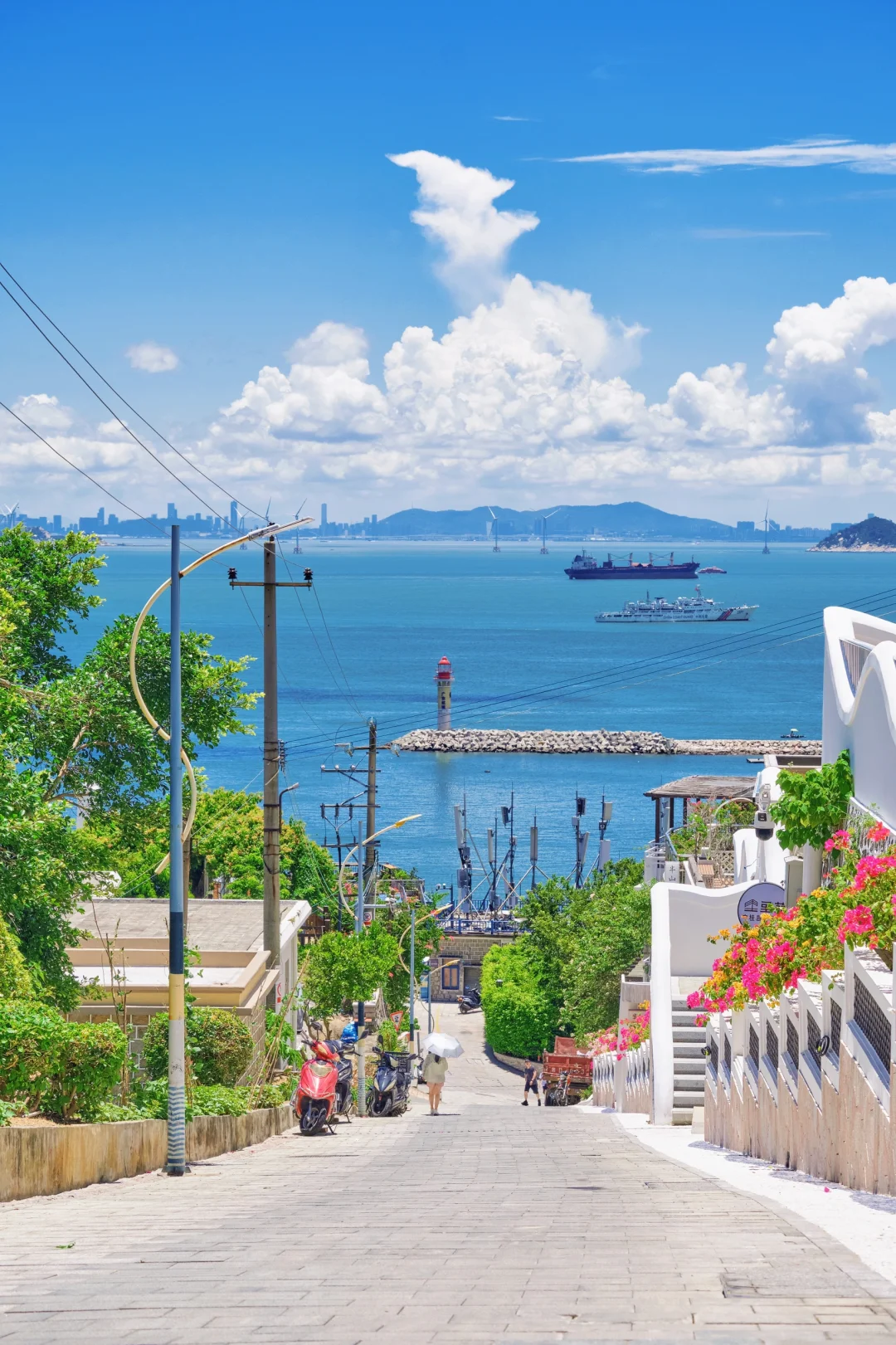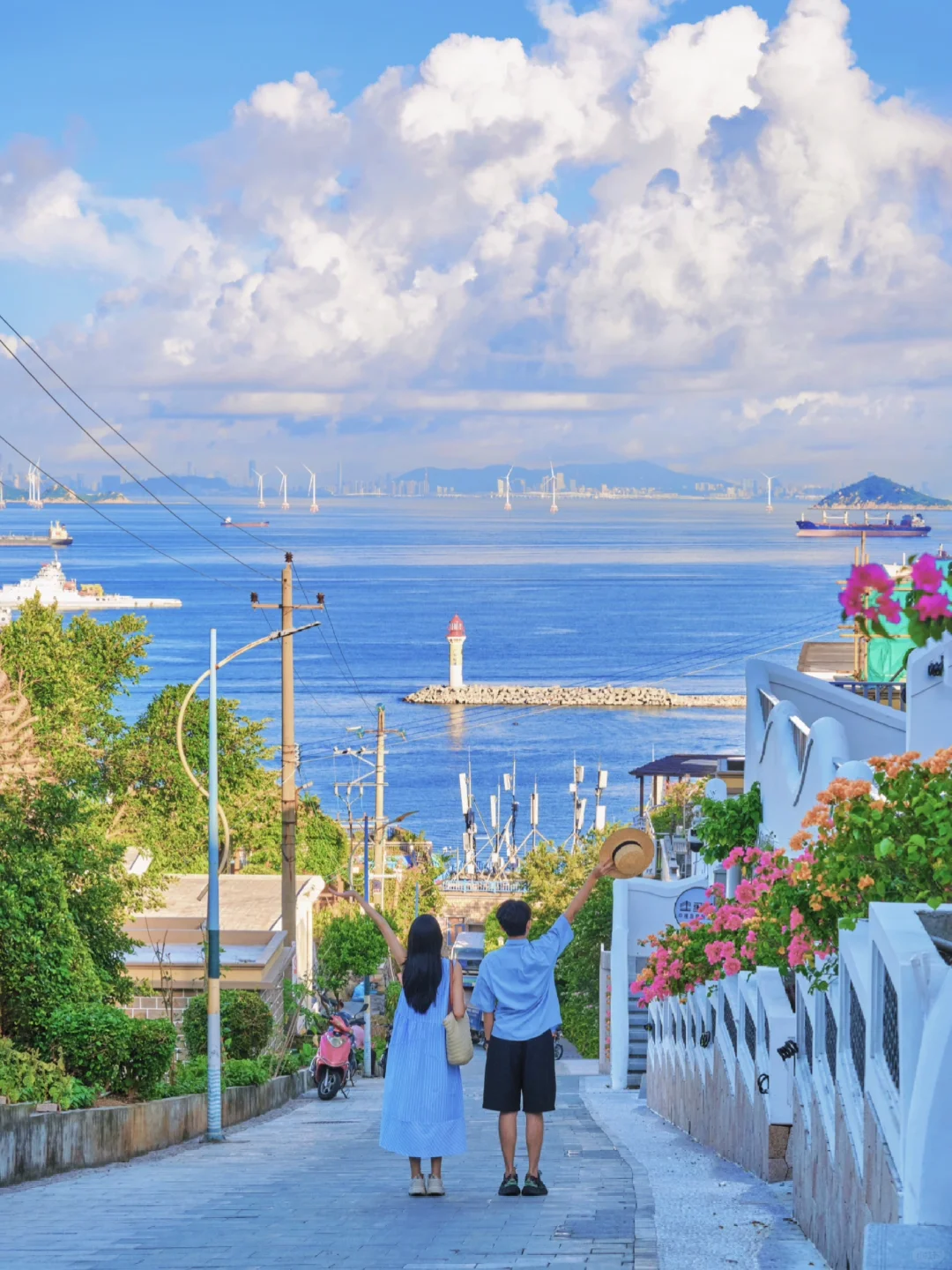 在南方的蔚蓝边际🗺️🗺️ 有一座关于夏日的小岛🏝️静静躺卧于碧波万顷 忙碌的夏日☀️☀️总让人心浮气躁 🚢🚢小伙伴们不妨趁着周末远离城市喧嚣,来这座“去班味”小岛,浸在蔚蓝大海的治愈之中 🗺️原来我心中的蓝海绿洲真的存在‼️ 蔚蓝的海水与天空交织🌊海面上风车缓缓转动,岛上的鲜花在微风中摇曳,从波光粼粼到落日余晖🌅🌅 这一刻🥰🥰我彻底沉醉在这座岛屿之中~ 🙋🏻‍♂️🙋🏻‍♂️这便是位于广东珠海的——桂山岛🗺️ 🚇【关于交通】 📍珠海香洲港码头 📍深圳蛇口港码头 目前上岛只能乘坐轮渡到达,珠海深圳都有港口直达,我是从广州出发,听别的小伙伴说南沙客运港也有船直达,不过我去看显示无航程,所以选择自驾到香洲港码头乘船⏱️50分钟到达桂山岛码头。 自驾的小伙伴,停车在香洲港码头需要💰50/天,可以选择在附近的桃李家园,米兰春天,翠香路附近的停车场停车 📷【拍照机位】 🟢爱民路(桂山岛的网红拍照点,真的巨出片,不过有一段很长的上坡路段,可以选择乘坐便民车上去) 🟢海边斑马线(在上去爱民路的路口处) 🟢桂山舰纪念公园(一段很长的海边礁石栈道,蔚蓝的大海加橘黄色的礁石,对比色拍照贼出片) 🟢桂山岛码头(傍晚的时候适合记得来这里,灯塔,落日,风车,渔船,我夕阳的照片都是在这里拍的) 🟢里苑楼下的树洞(偶然发现的一个拍照很绝的机位,透过树洞是蔚蓝的大海) 🟢北山水库(通往大海的天梯,这里比较远,没什么人) 📝【旅行小TIPS】 1️⃣夏天真的是巨晒,一些步行比较多的地方小伙伴们可以选择早上或者傍晚游玩,记得做好防晒 2️⃣岛上的交通主要是步行,便民车与自行车,远一点建议乘坐便民车,便民车可以随时叫师傅过来接送 3️⃣住宿建议选择爱民路的山坡上,视野真的是绝绝子,可以选择海景房,夏天在房间拉开窗帘就可以看到大海啦! 4️⃣民宿跟船票记得要提前定,节假日或者周末临时订基本上都是满房