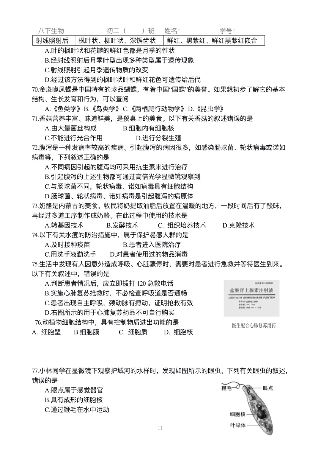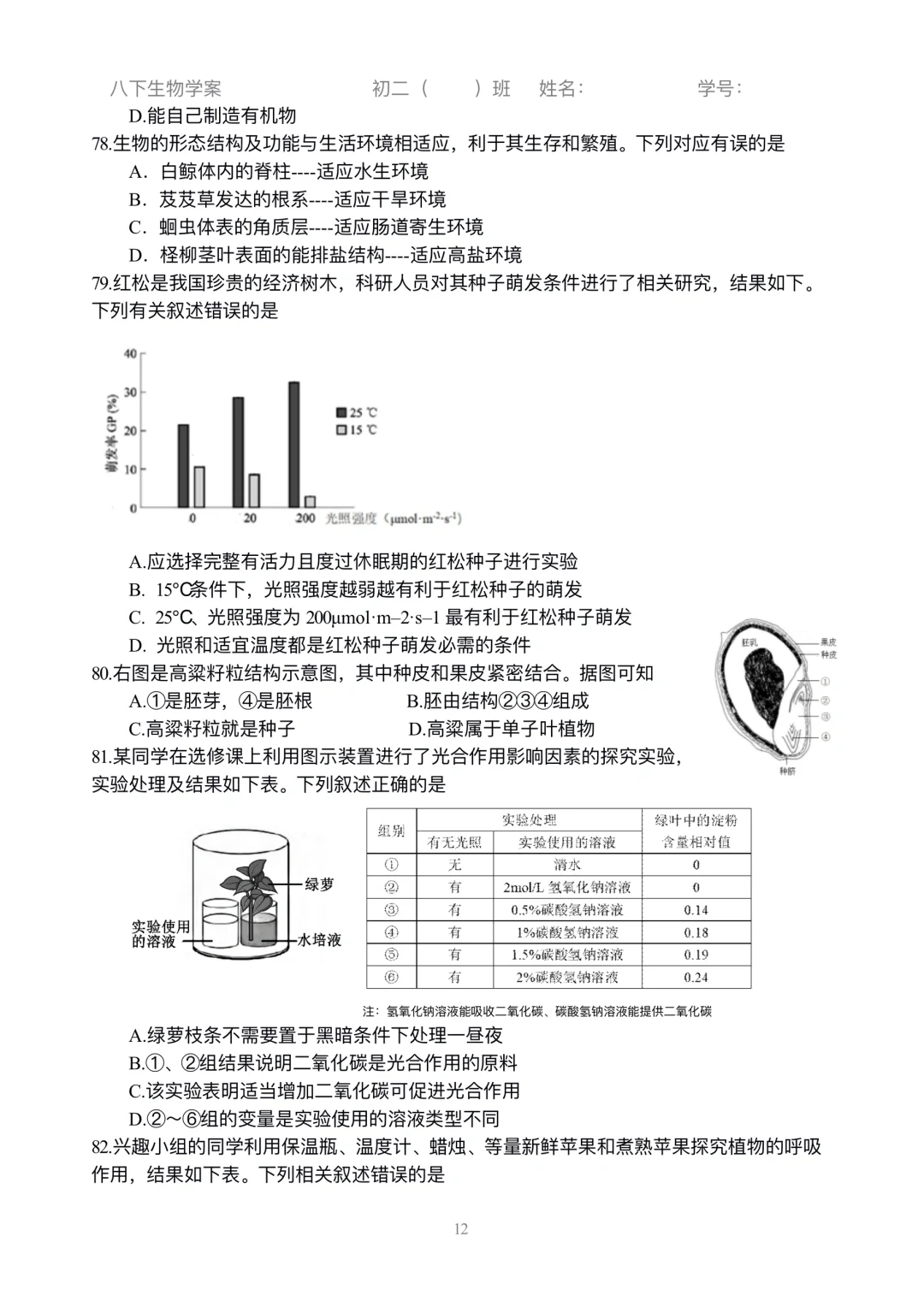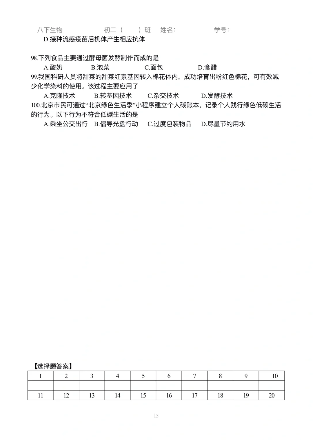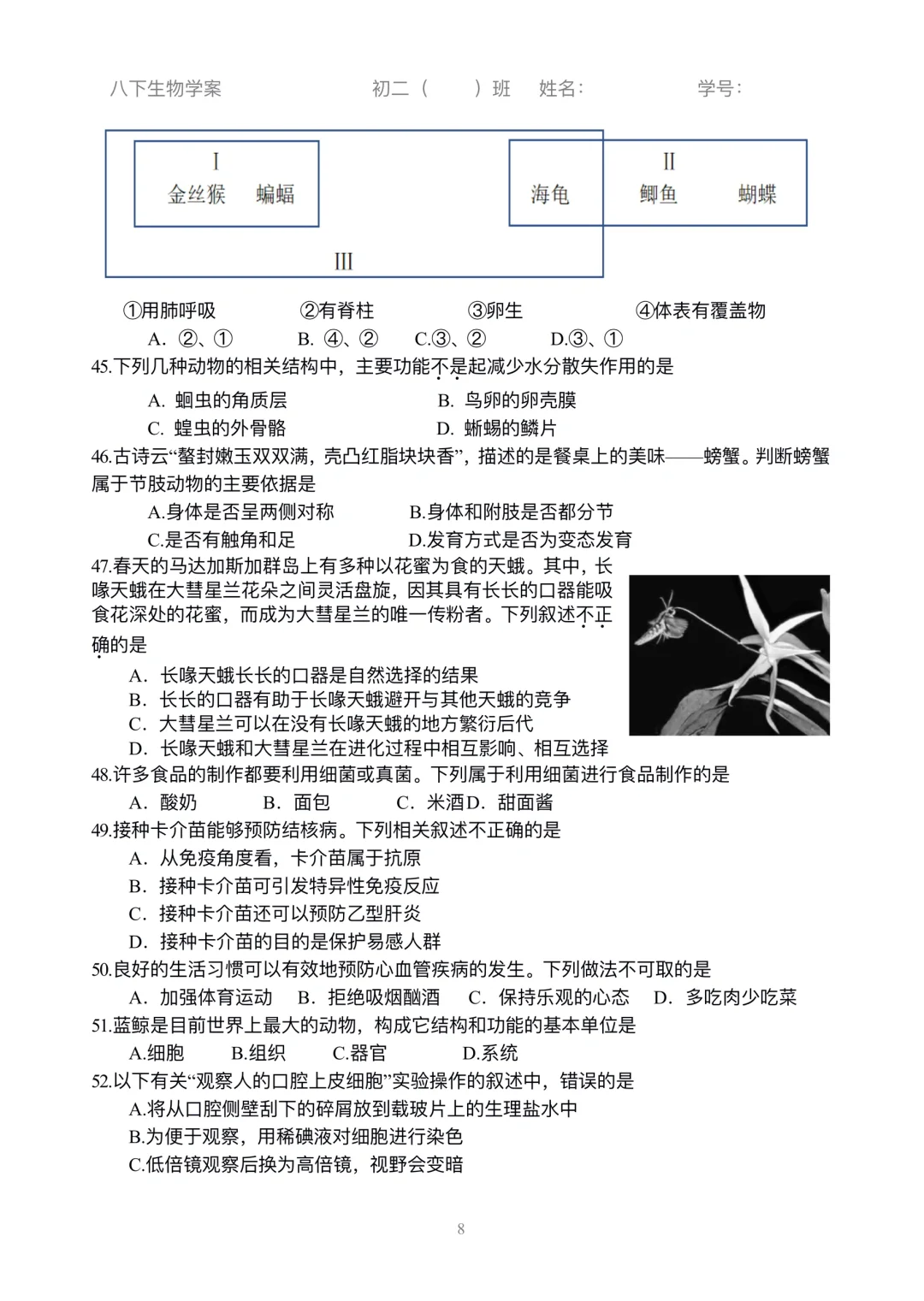 初二生物|小中考选择练习刷起来
