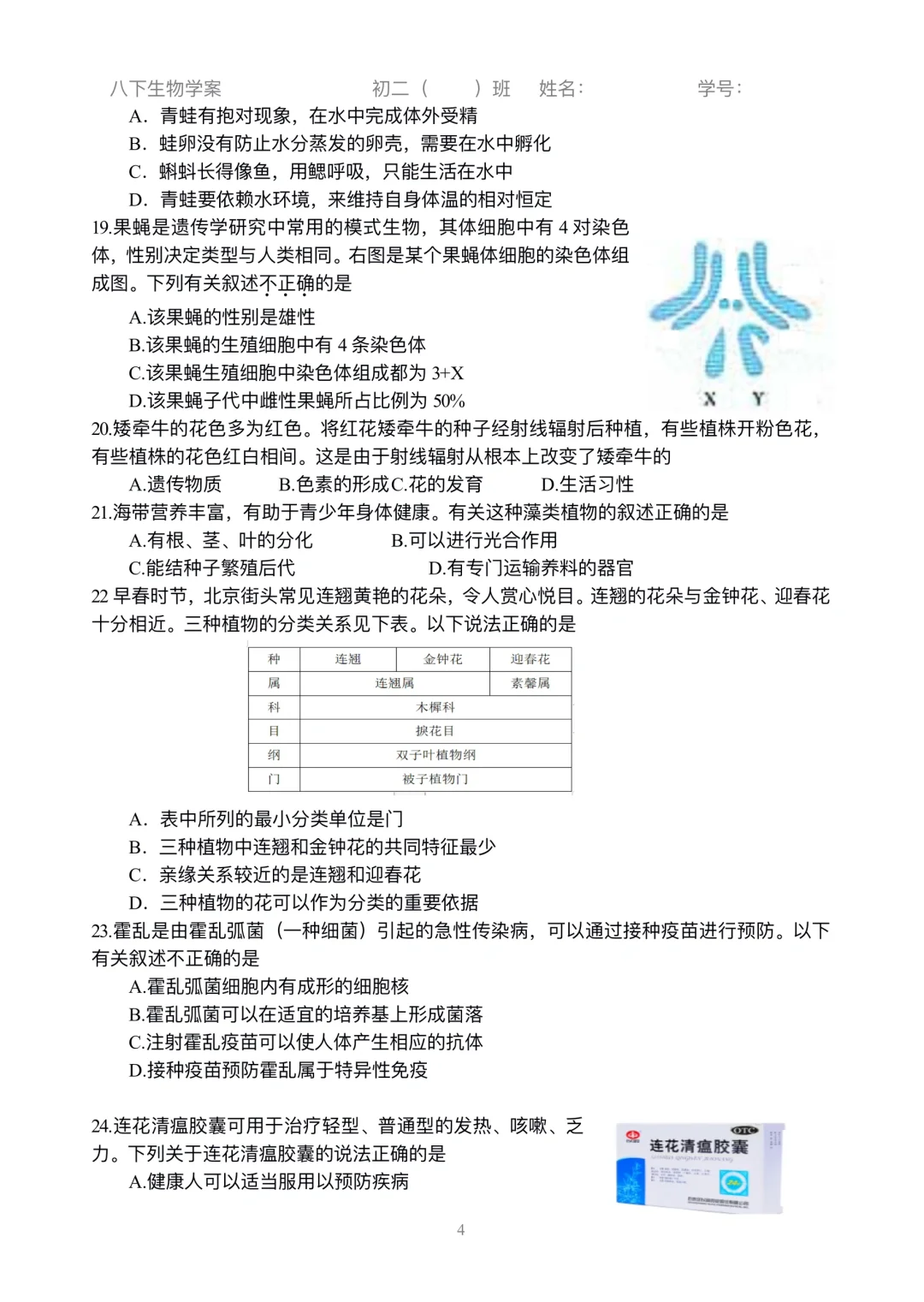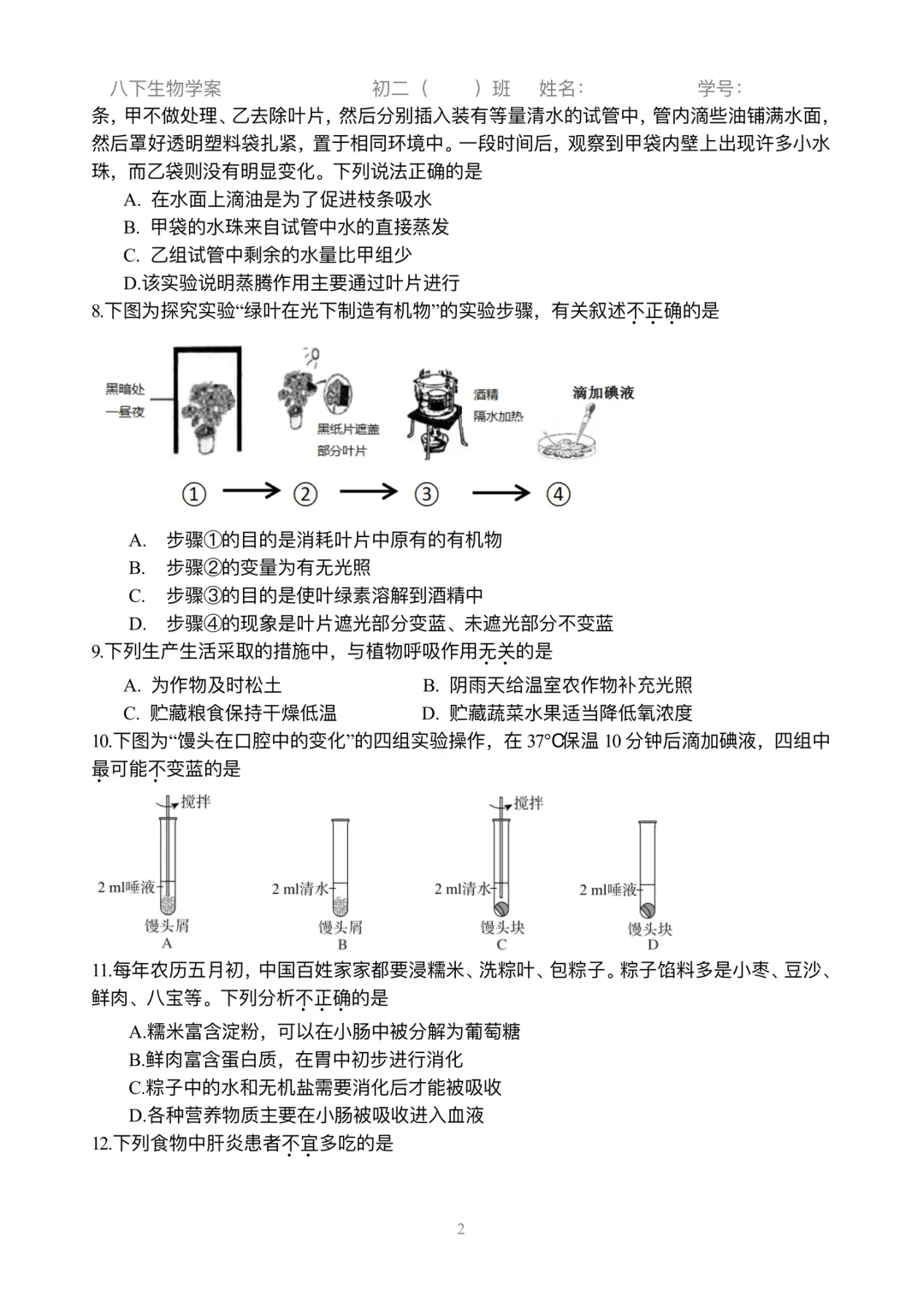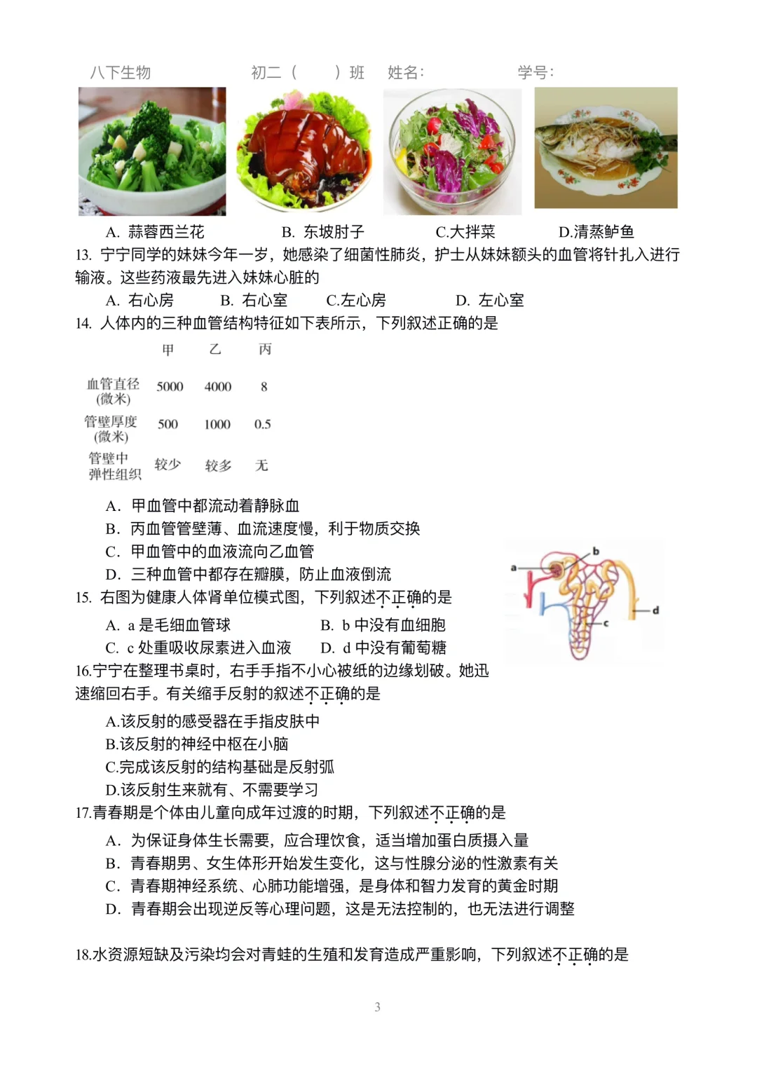 初二生物|小中考选择练习刷起来