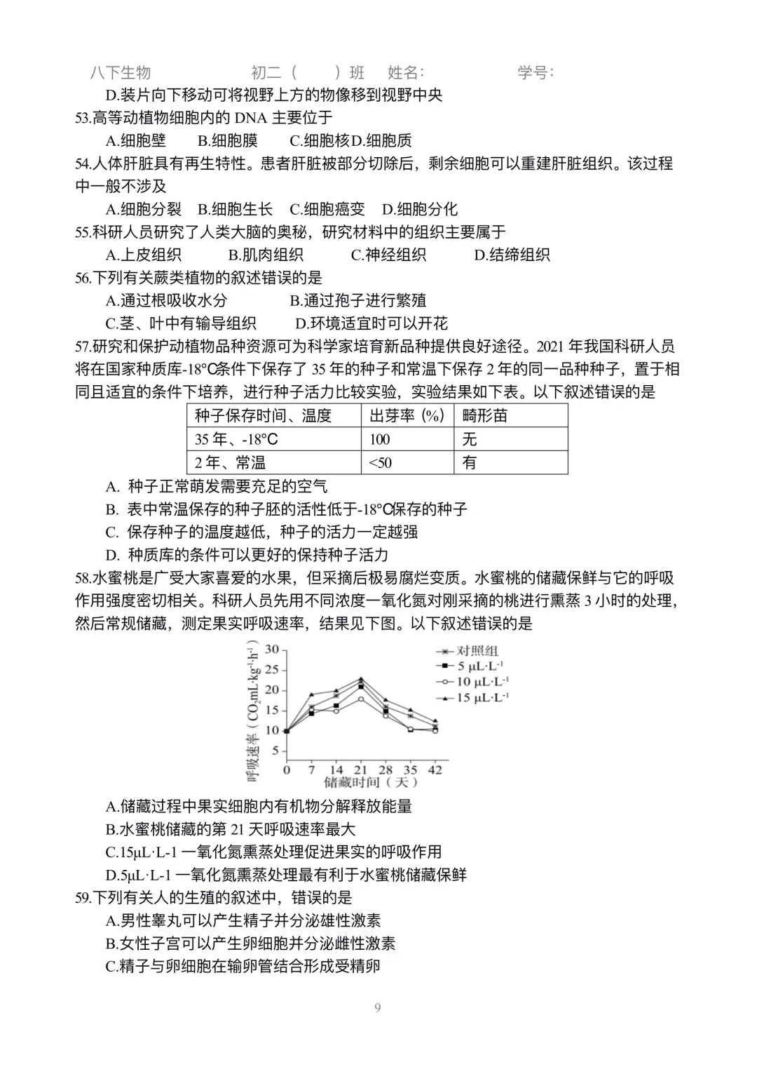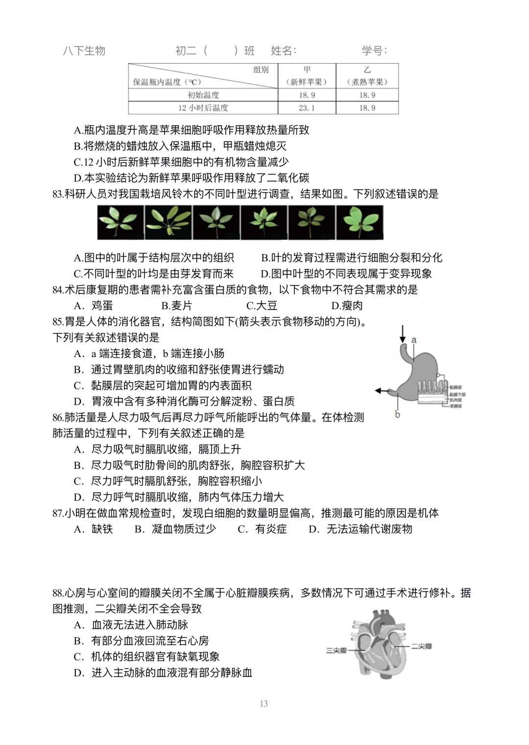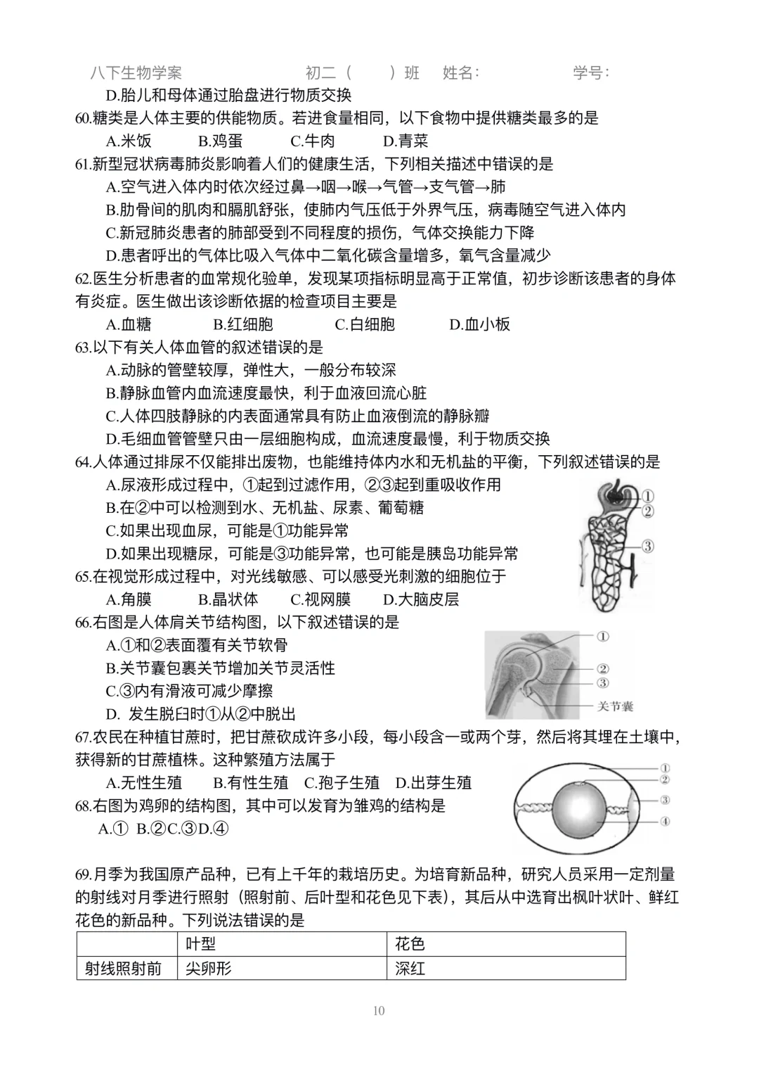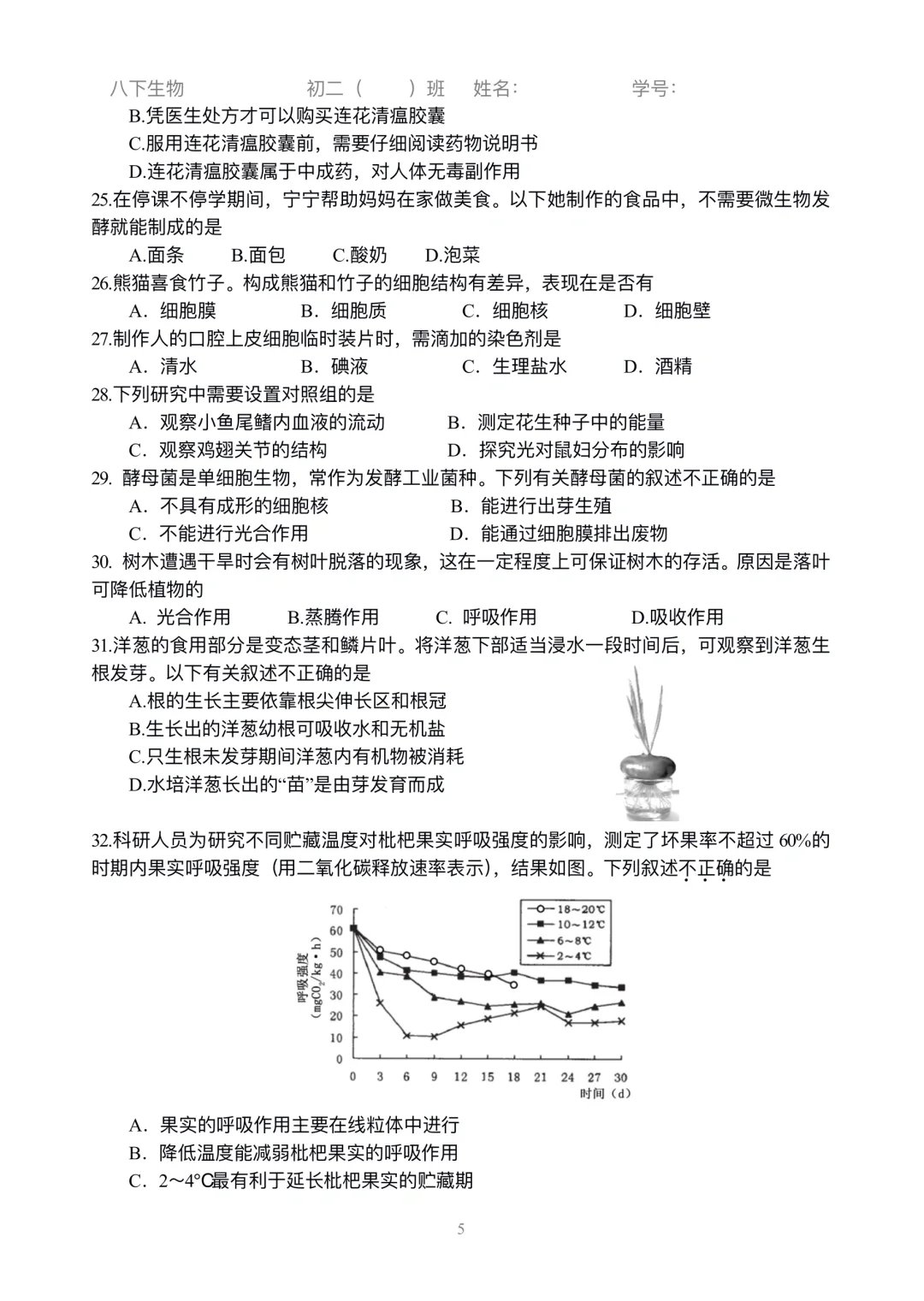 初二生物|小中考选择练习刷起来