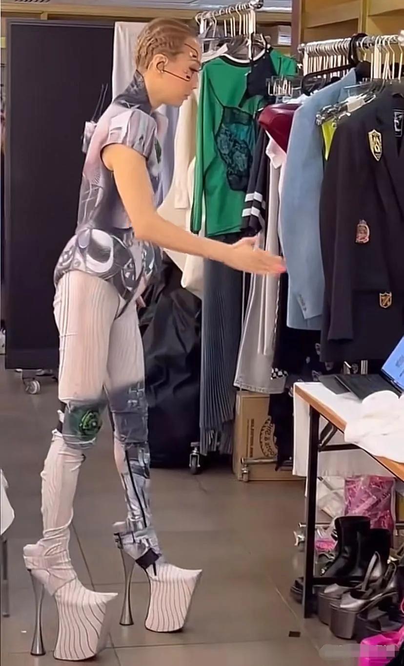 郑秀文演唱会后台练习舞步,夸张的舞台造型十分大胆前卫惊人,脚下的鞋子更是夸张到语塞,张扬又过火,平时都很漂亮的大美女,一上舞台造型就雷人,另类怪异,都已经50多岁的人了就不能低调点吗?