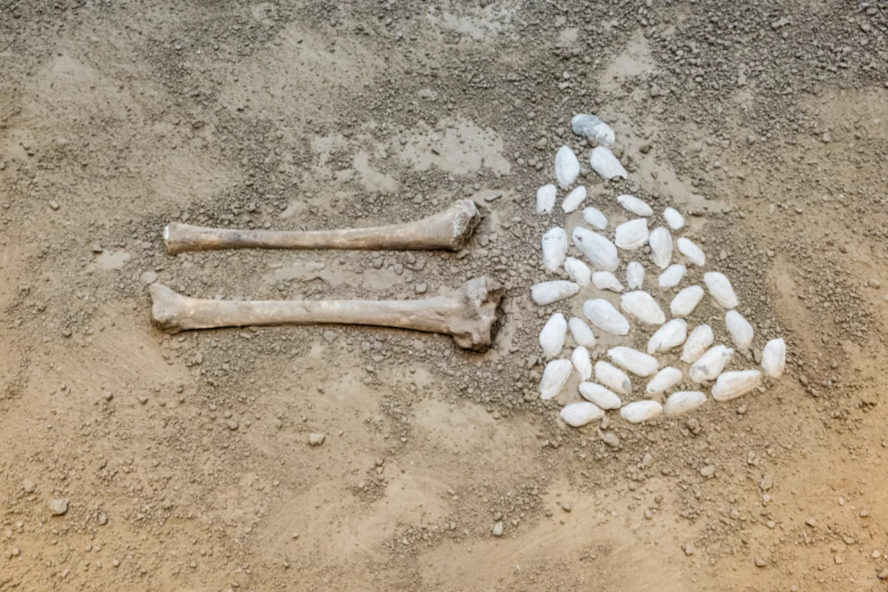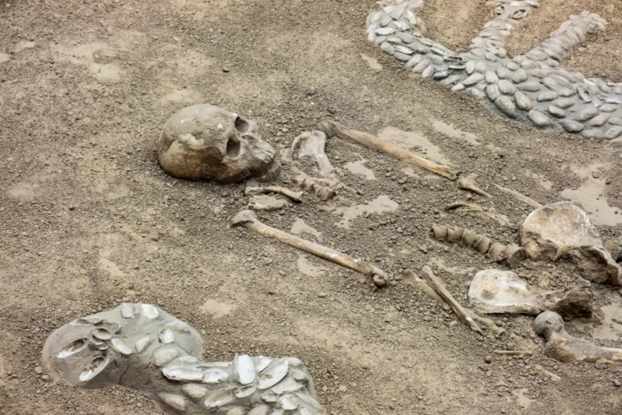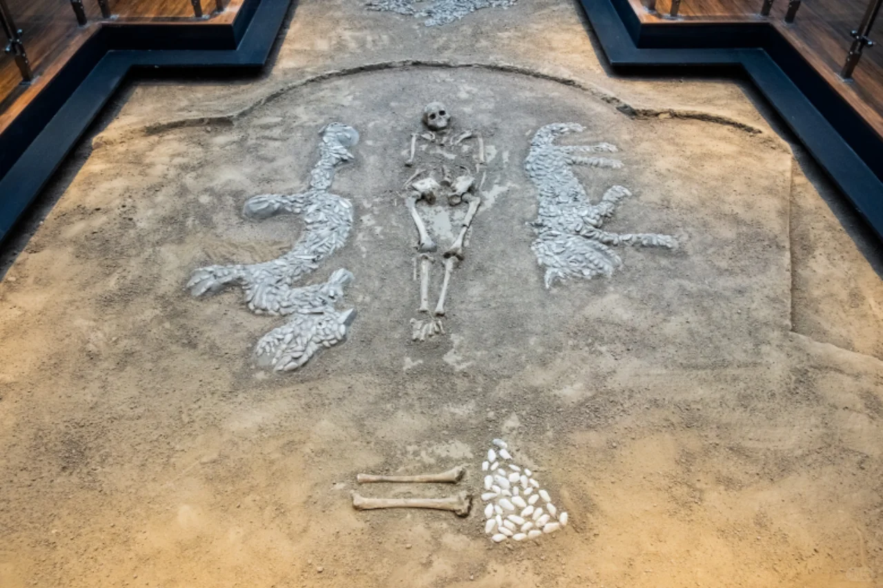 “西水坡遗址东周 时期的大型排葬坑, 共发现30余个, 从墓中的死者都是男性青年,年龄在20-25岁之间, 有不少骨架上留有射进的箭头,兵器和刀砍痕分析, 排葬坑中的死者不是正常死亡的, 有可能是在大的战争中阵亡的士卒。”