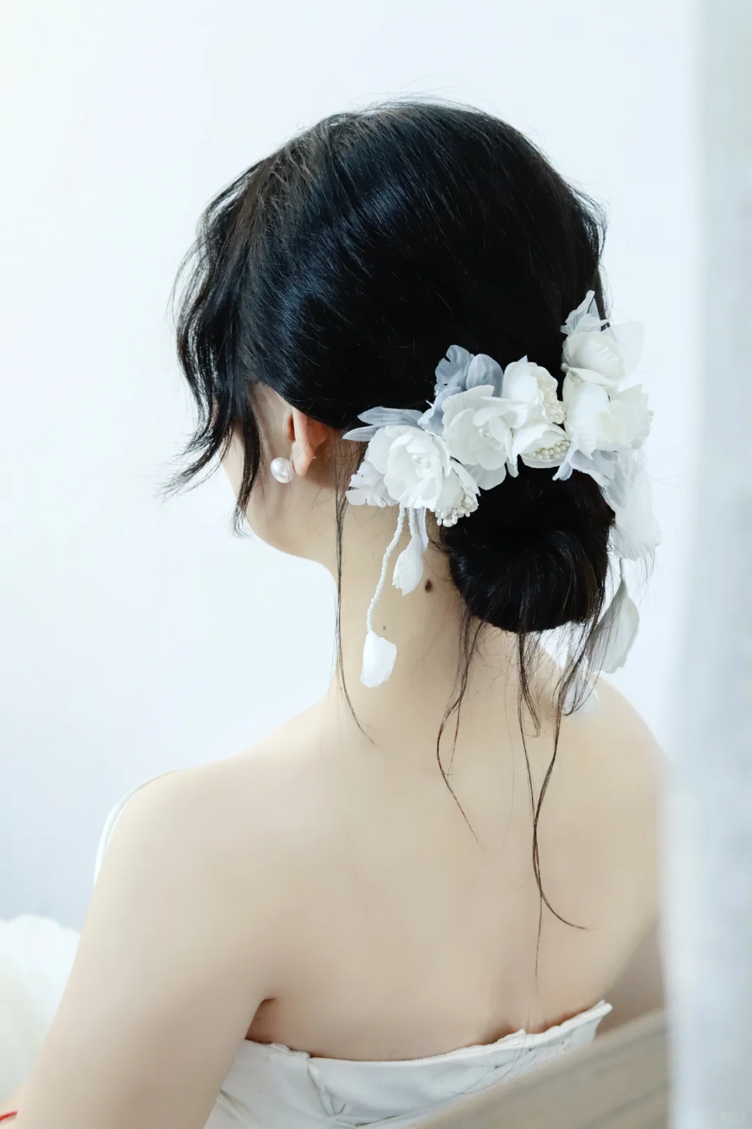 风拂柳,粉樱绽放,我身着浅粉蕾丝旗袍,立于古栏之下。长袖轻笼,盘髻缀珠,耳坠摇曳
