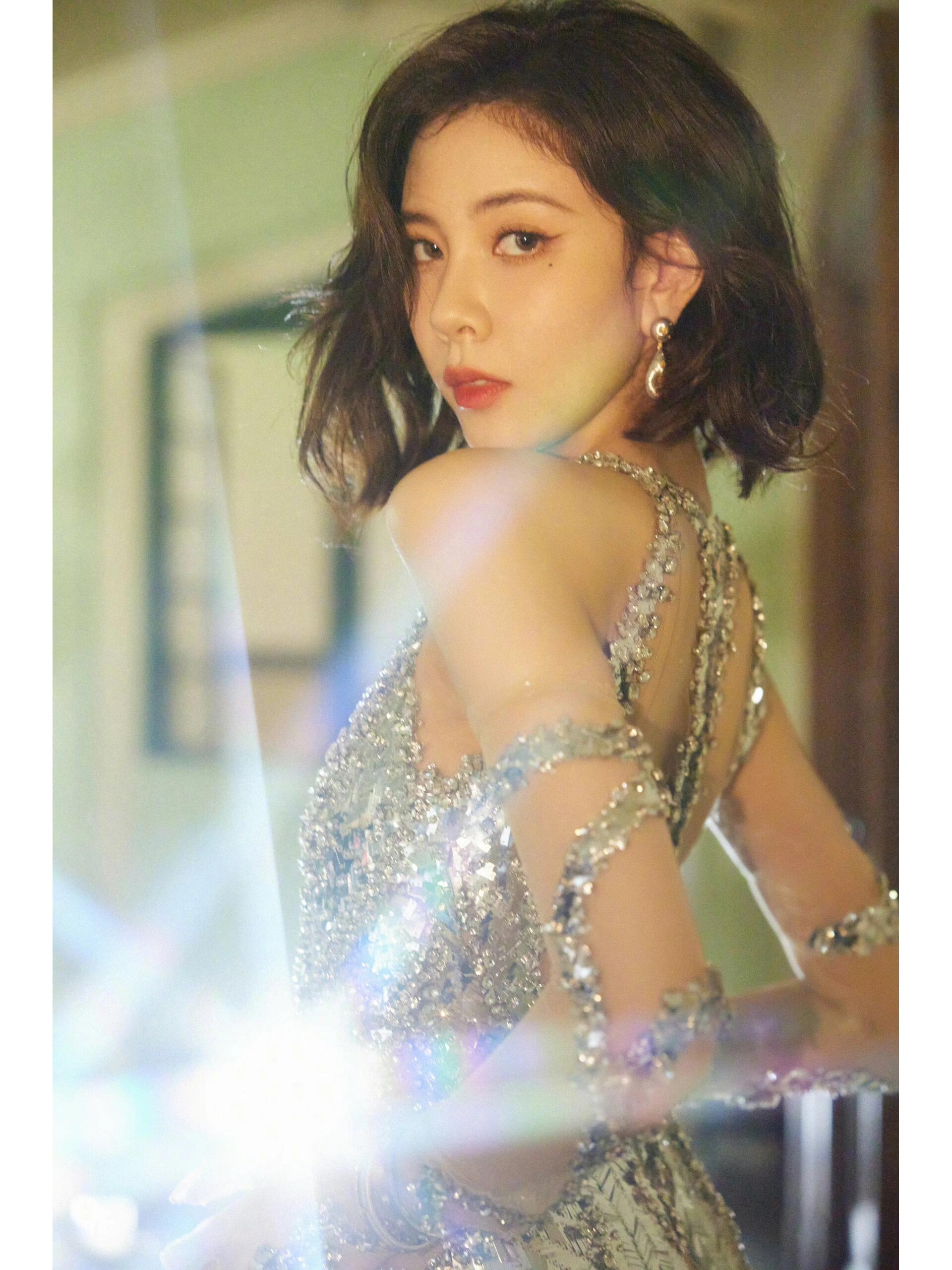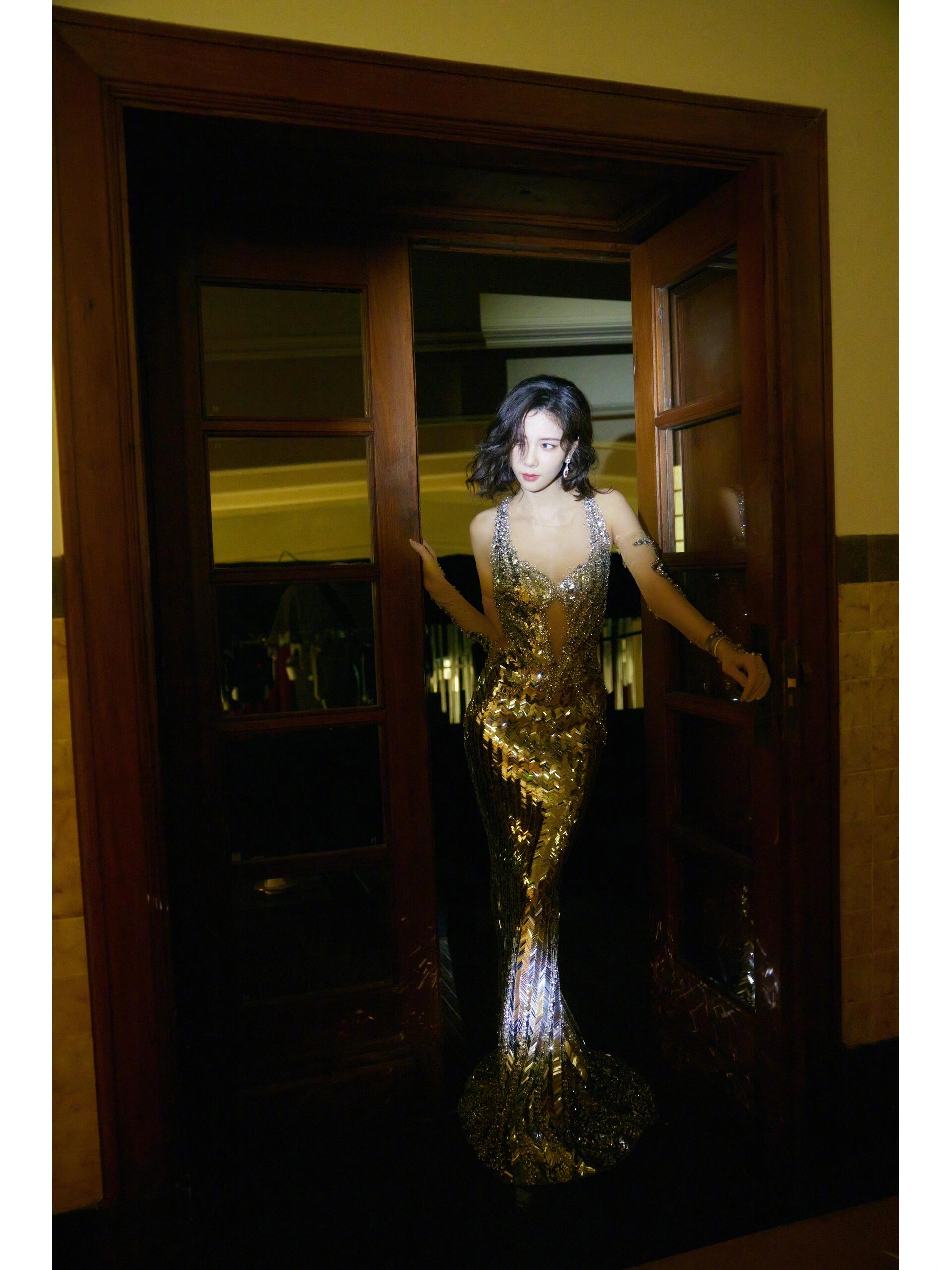 宋妍霏灵感派对,一身闪耀的银色亮片长裙,修身镂空剪裁尽显曼妙身姿,搭配微卷复古短发,明艳照人的女明星魅力~