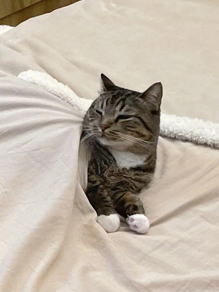 #被单的洞里长猫了# 宝宝怎么会有错呢,不就是把妈妈的床单弄出个大洞吗,宝宝一点错都没有[爱你]
