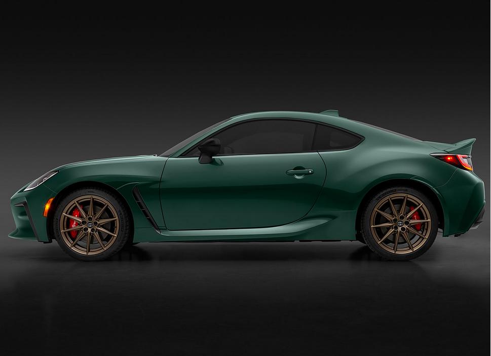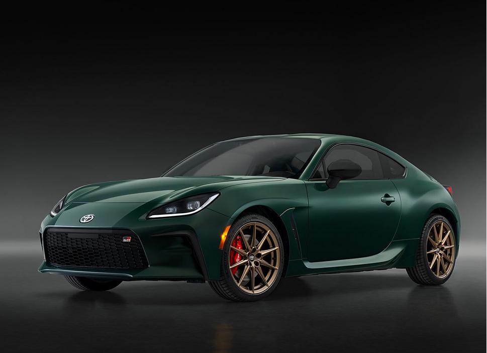 【刹车悬架升级 丰田GR 86箱根特别版官图 】日前,丰田官方发布了一组GR 86 Hakone Special Edition的官图,车名可翻译为GR 86箱根特别版。丰田推出这款特别版车型是为了向日本东京附近的箱根收费公路(Hakone Turnpike)致敬,这段公路一直以来都被《头文字D》和漂移爱好者奉为“圣地”。该车仅在美国市场发售,限量860辆。 外观来看,新车采用了专属的山脊绿车漆,整体呈现出一种幽暗深邃的绿色。车头配备了大尺寸的熏黑中网,右侧有丰田高性能部门的GR标志,配合两侧的导流槽造型,使车头看起来拥有较强的攻击性。 车身侧面来看,新车配备了古铜色的多辐轮圈,这种颜色在日本的改装车中十分流行。轮圈内部可以看到红色的Brembo刹车卡钳,此外新车还配备了SACHS避振系统,底盘也经过了特殊调校,官方表示新车在激烈驾驶时的侧倾控制和转向灵敏度都得到了提升。车尾来看,新车配备了比普通版更大尺寸的扰流板,并且拥有箱根特别版专属的古铜色LOGO。 车内来看,新车采用了专属的棕色+黑色搭配,方向盘采用了棕色缝线,下方还拥有丰田GR运动标志。座椅拥有较高的侧翼,能够在激烈驾驶时提供充足的侧向支撑。此外,新车的车门处还配备了箱根特别版专属的迎宾投影。 动力方面,新车搭载2.4L自然吸气水平对置四缸发动机,最大功率235马力,最大扭矩250牛·米,传动系统匹配6挡手动变速箱,官方0-100km/h加速时间为6.1秒。此外,该车在换挡杆后方还配备了TRACK按钮,可一键开启赛道模式。【来自懂车帝车友圈】