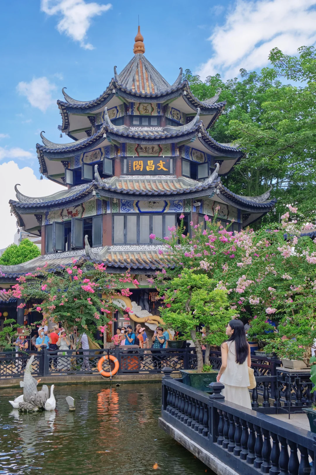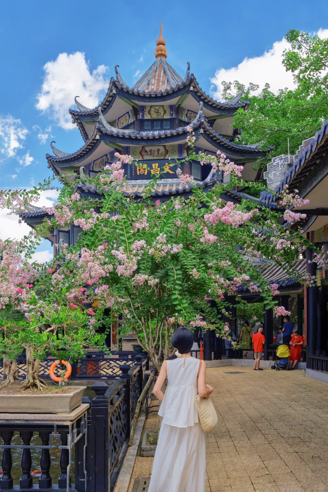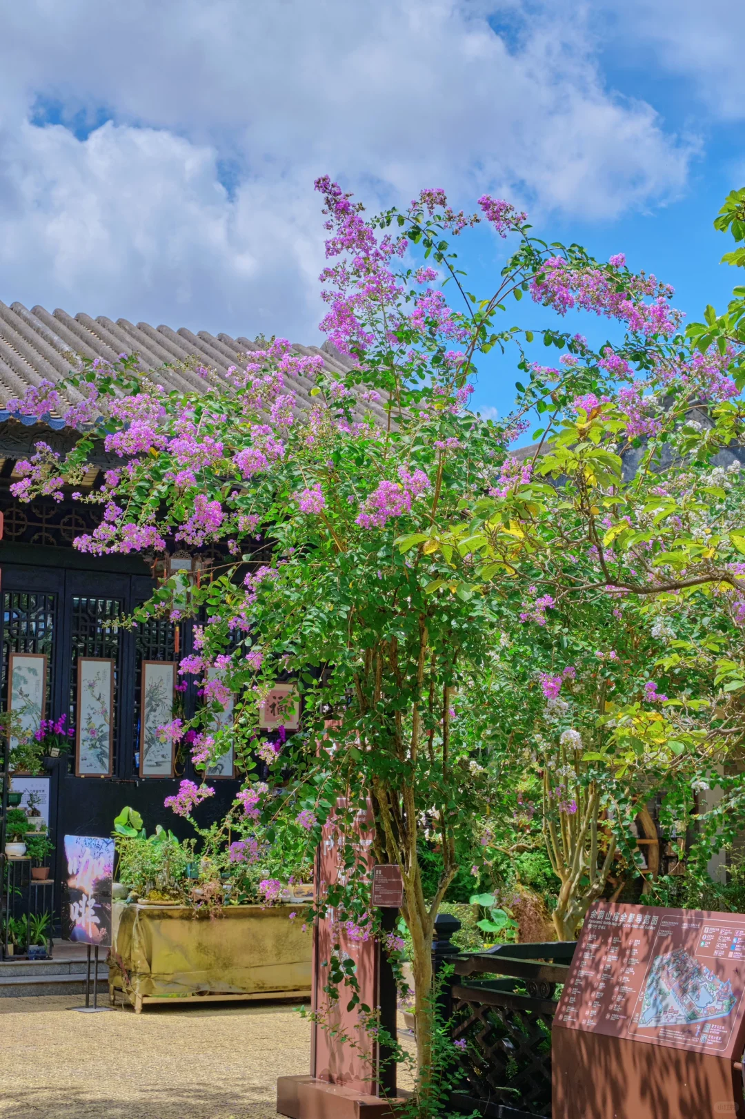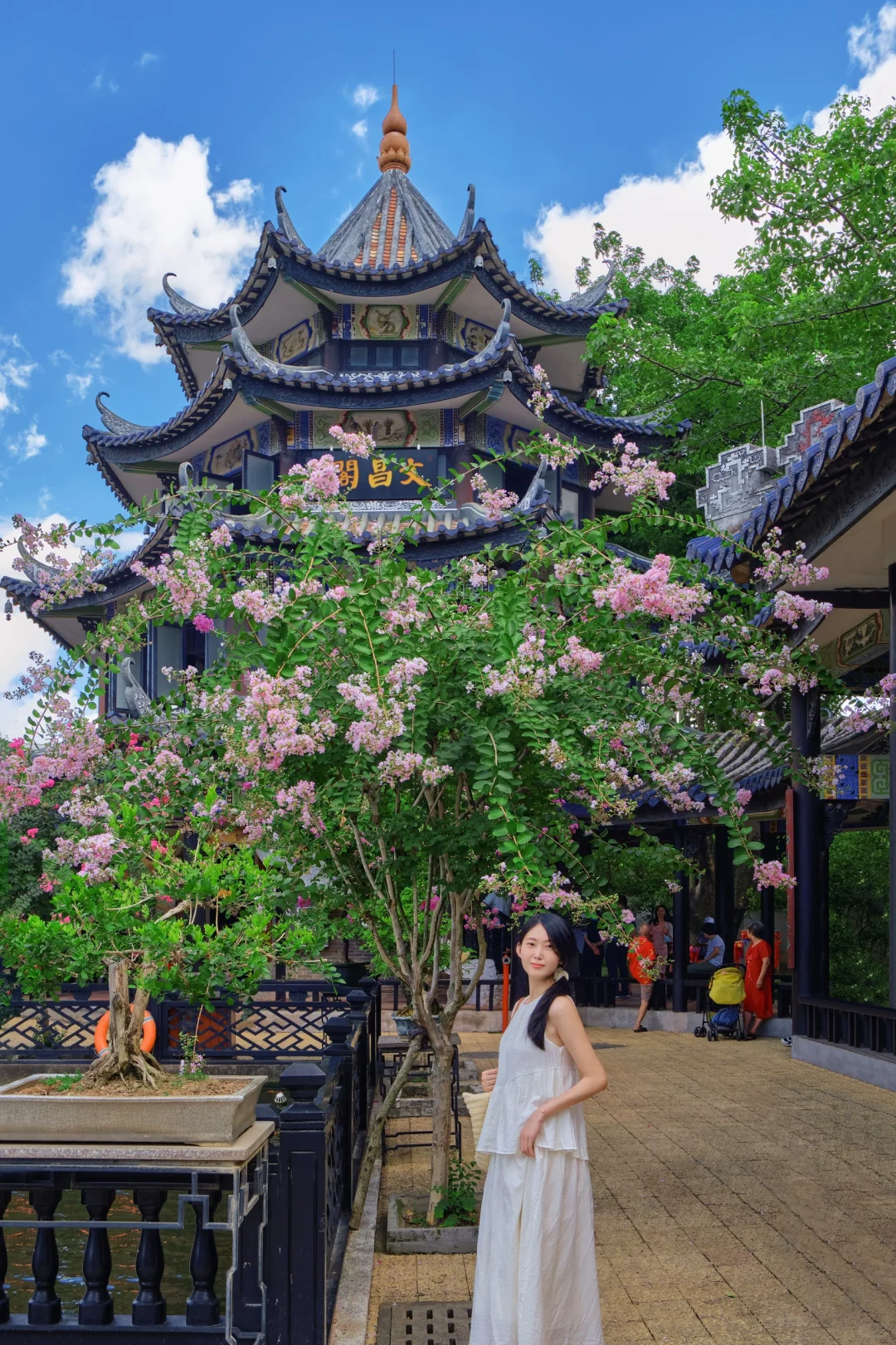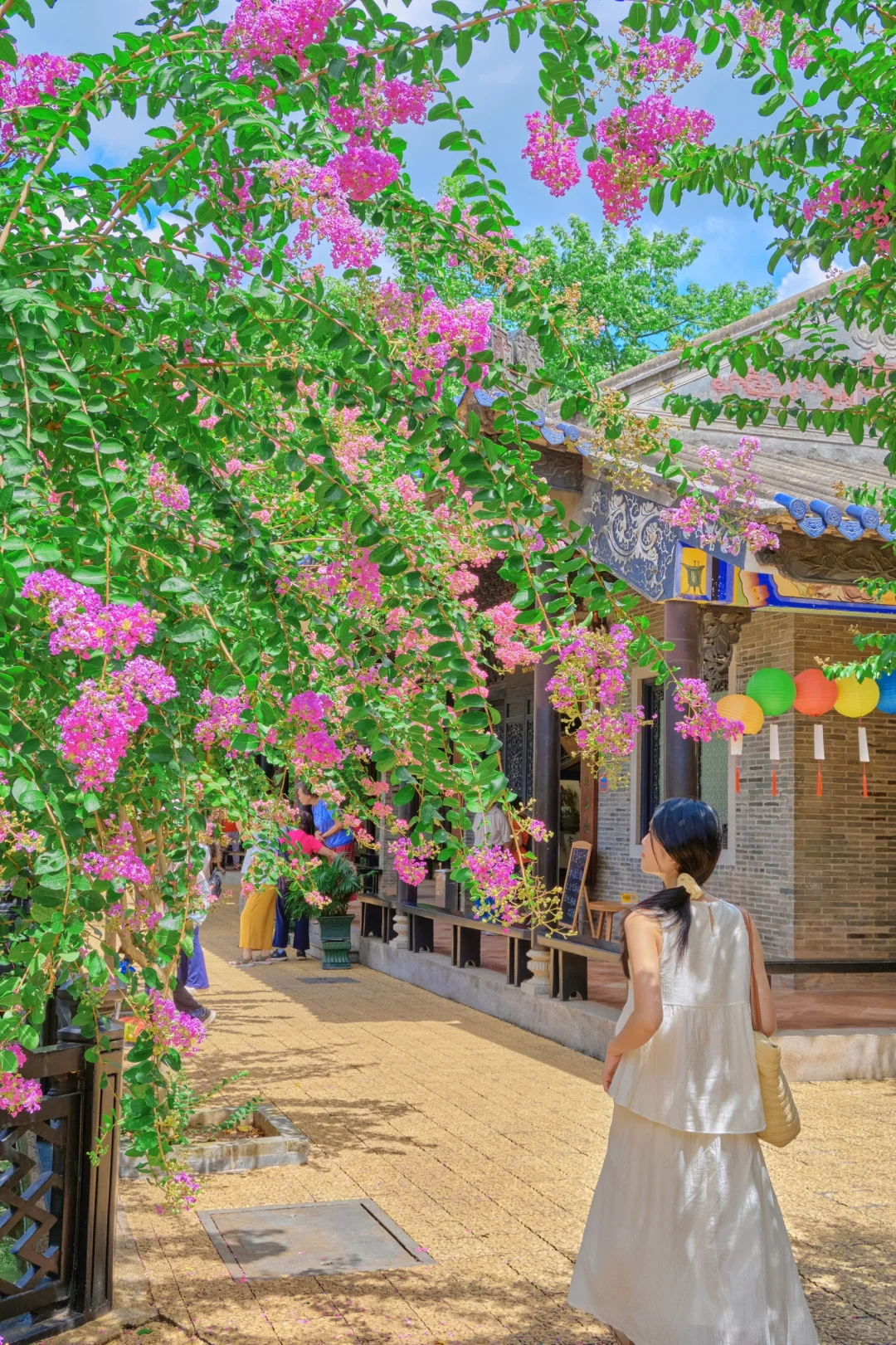 亭台楼阁🌸落花流水 如果说,在广州有哪些非常具有岭南特色的古风园林,我想这里总会让人没有办法拒绝‼️ 现在正值紫薇花的花期🌸🌸走进这园林深处,紫薇花簇拥着古木参天,杨柳随风飘扬☀️☀️阳光透过树叶的缝隙,洒在花瓣上。 光影交错间☀️我仿佛穿越了古代柳枝飞扬花满城的场景 🙋🏻‍♂️🙋🏻‍♂️这里便是广东四大名园之一的——余荫山房 余荫山房与佛山梁园、东莞可园、顺德清晖园合称广东四大名园。距今已有150多年的历史,以小巧玲珑、布局精细的艺术特色著称。现在满园开遍的紫薇花更是为这座园林添锦上花 在广州‼️喜欢汉服古风的小伙伴记得来一次这里,错过了要等一年‼️ 📍地点:广州余荫山房 🚇交通:广州地铁七号线板桥站A出口步行或者打车1.6公里即可到达 🚗自驾:定位余荫山房停车场¥3/小时 🎫门票:18元 ⌚️开放时间:08:00——18:00 [清单R]小TIPS—————— 1️⃣园区不是很大,如果是周末以及节假日人会比较多,喜欢安静的小伙伴们可以选择工作日或者早上出行 2️⃣想要拍古风照片的小伙伴,余荫山房里面有租汉服,以及妆造,摄影师,小伙伴们也可以自带妆造以及摄影师 3️⃣个人比较喜欢的机位是文昌阁、浣红跨绿桥廊以及玲珑水榭,小伙伴们一定不要错过 4️⃣现在余荫山房里面的紫薇花正在盛开🌸紫薇花的花期很长,去年八月底去都还有,近期想要前往的小伙伴们可以放心冲‼️