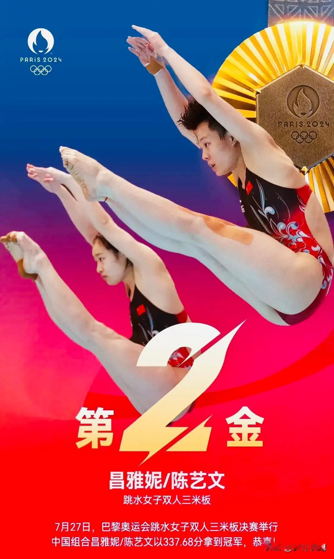 巴黎奥运跳水项目女子双人3米跳板决赛,陈艺文和昌雅妮从第一跳领先到最后一跳,最终以总分337.68分顺利拿到冠军,继盛李豪/黄雨婷拿下射击项目10米气步枪混合团体冠军后,为中国体育代表团拿下第二枚金牌,中国跳水梦之队实力真是毋庸置疑! #陈艺文昌雅妮女双3米板夺金# #和安踏一起为中国队加油# #奥运#