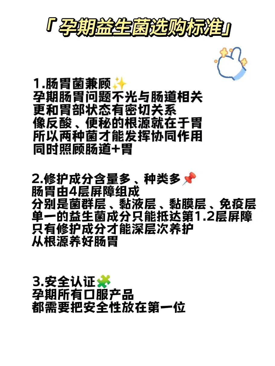 肠胃由4层屏障组成,孕期酸水、堆积的毒素都会损伤屏障,不重视的话产后恢复更难,所以一定要注意保护好肠胃屏障,可以选择有谷氨酰胺等修护成分的益生菌