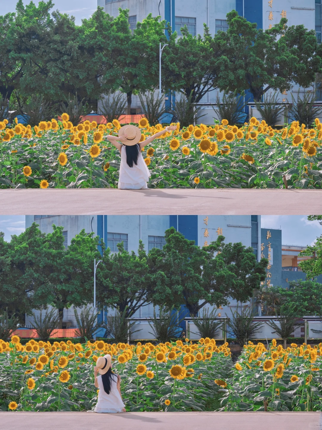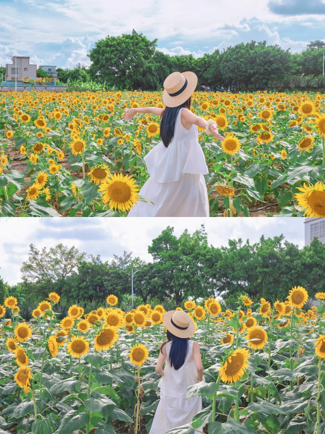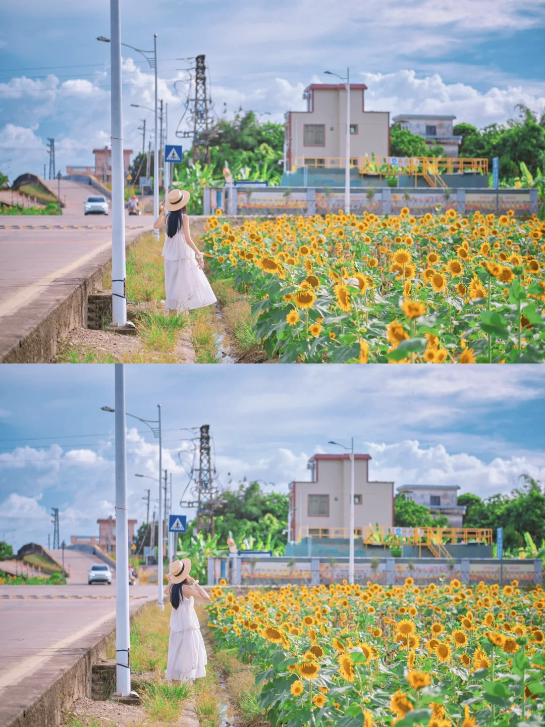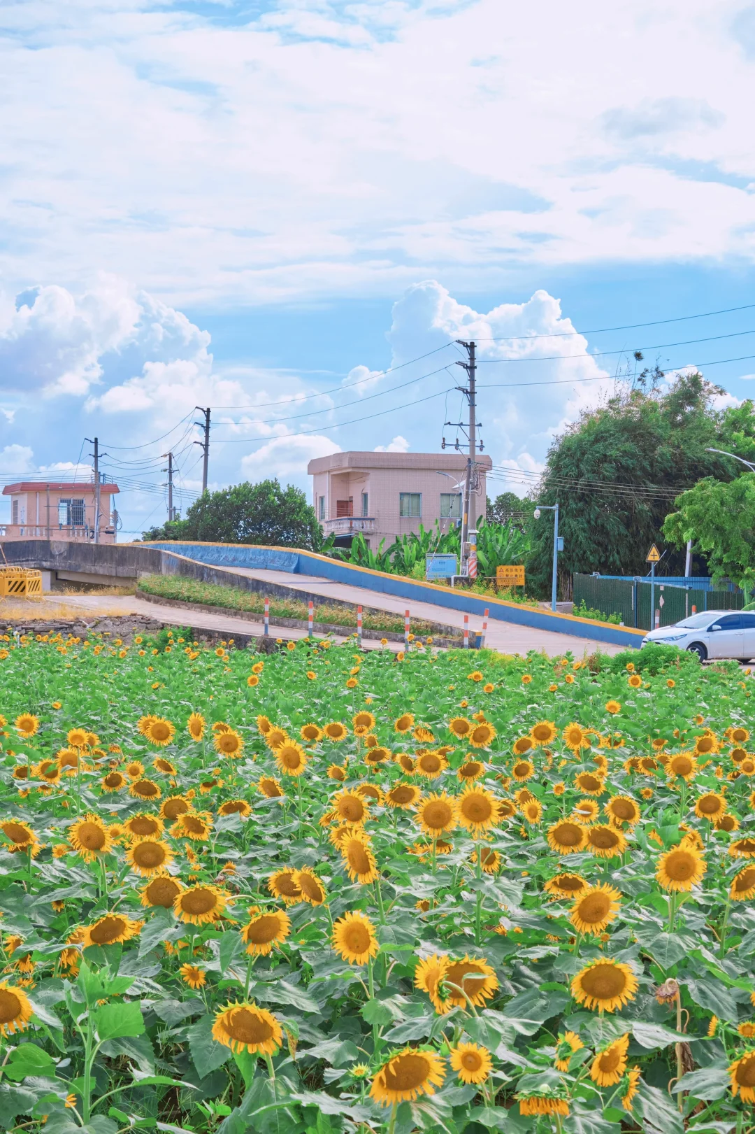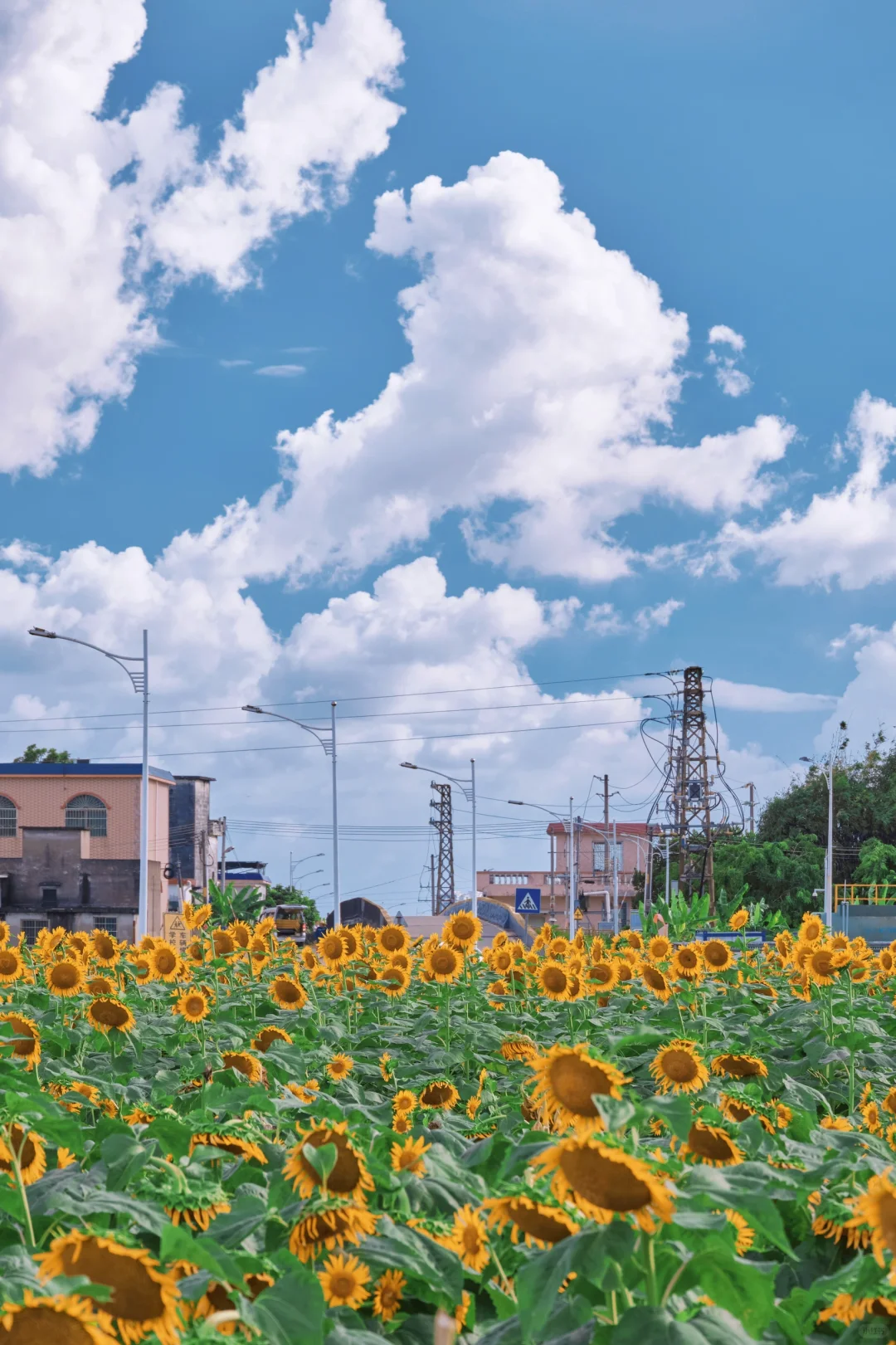 这片向日葵花海位于横沥镇冯马小学旁,走在花间小径上,两旁是密密麻麻的向日葵,它们随风轻轻摇曳☀️☀️阳光下更显灿烂夺目,仿佛在诉说着夏天的故事。