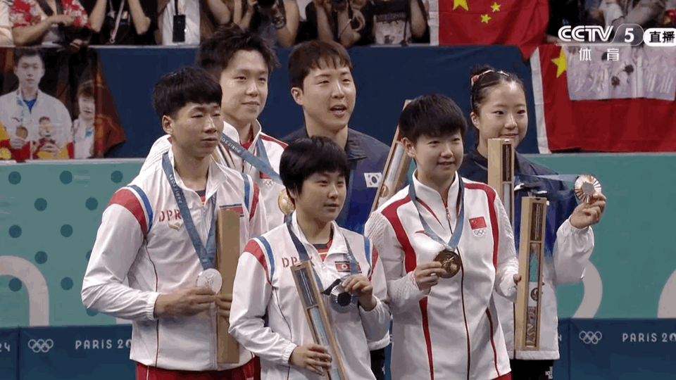 #孙颖莎王楚钦混双金牌##中朝韩3国运动员自拍##刘国梁颁奖#