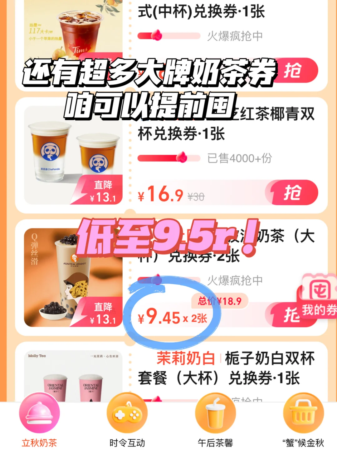 3.百大品牌奶茶券提前囤,低至9.5r一杯!