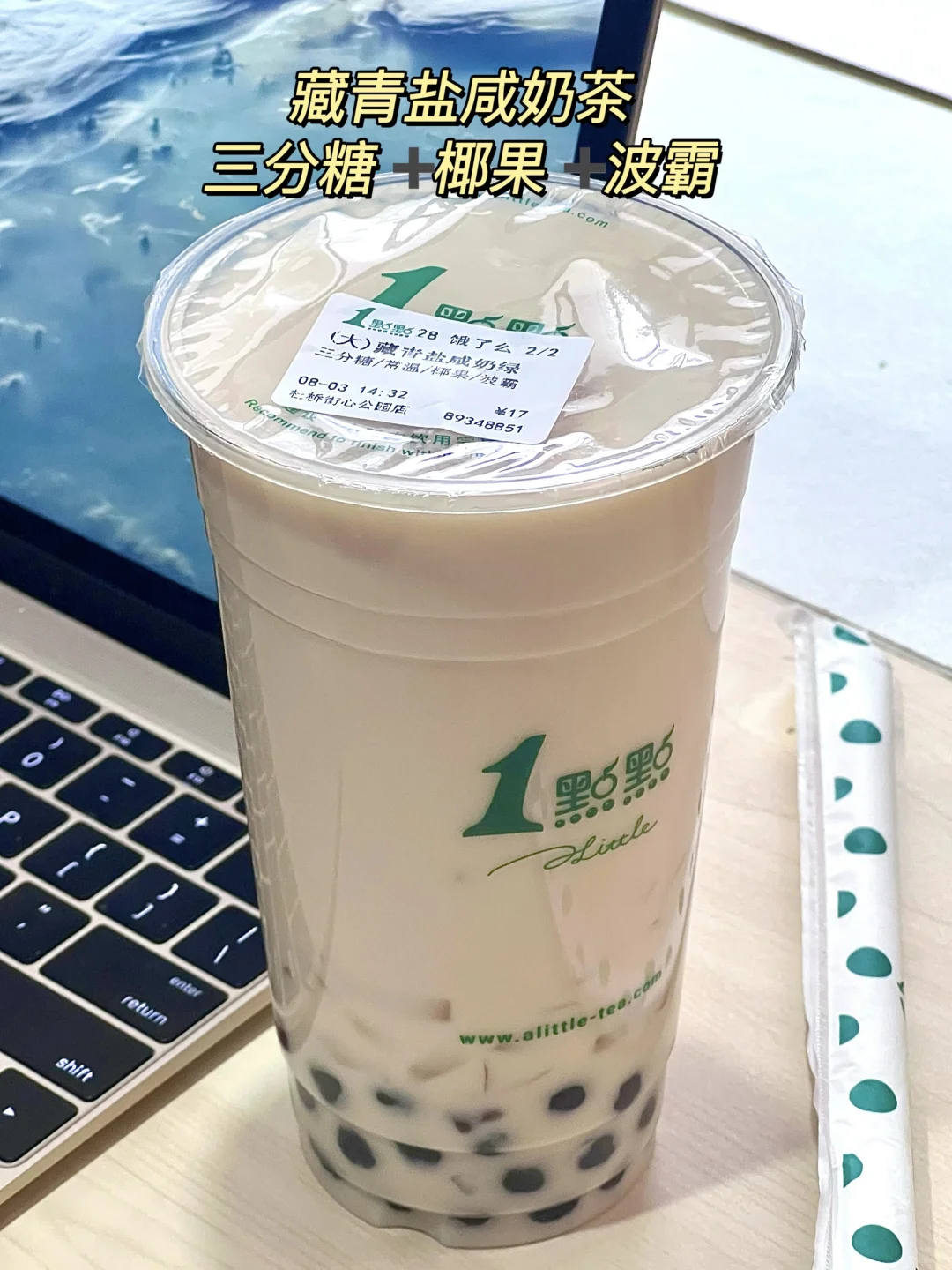 ✅一点点:藏青盐咸奶茶大杯➕三分糖➕椰果➕波霸