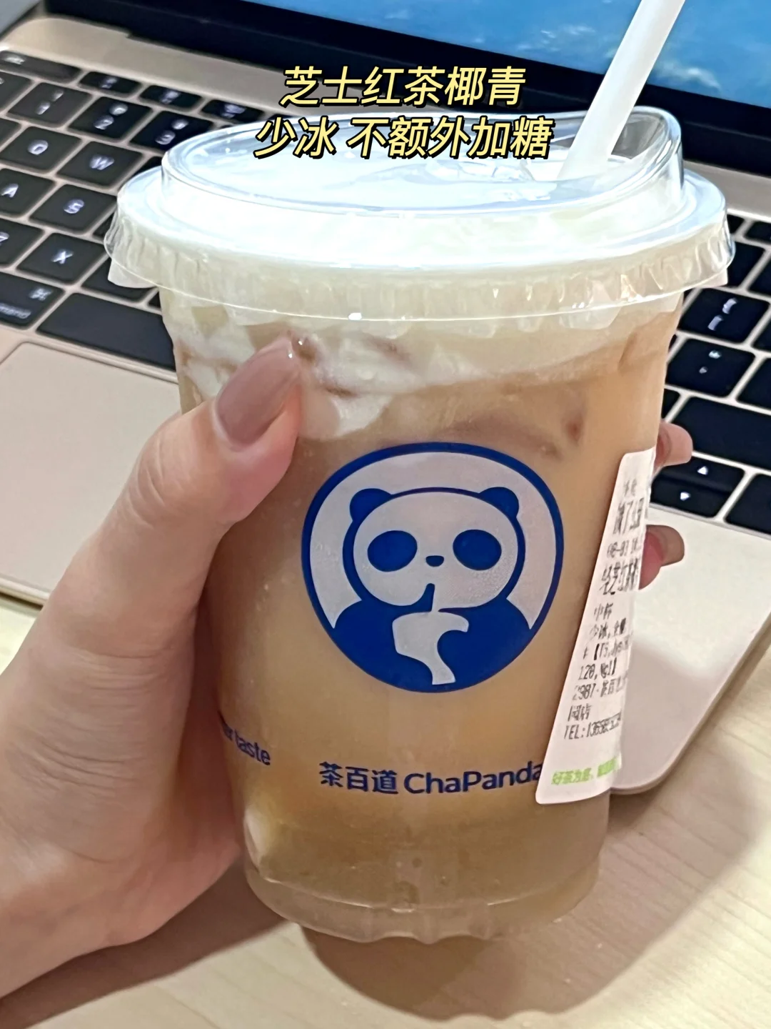 ✅茶百道:芝士红茶椰青中杯➕少冰➕不额外加糖