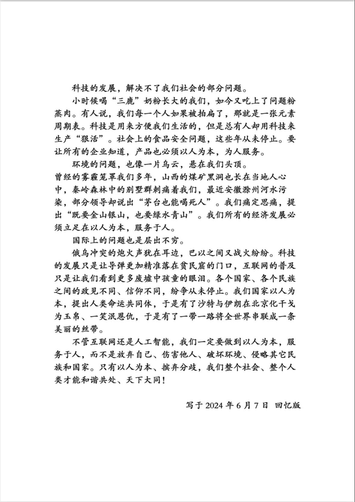 我的2024年高考作文,终于闲下来依靠回忆写了写,可能没办法做的完全复刻,但是和我考场写的应该差距不大。